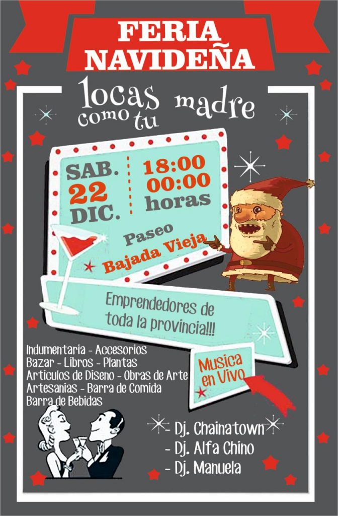 Porque los productores independientes desean que en esta Navidad el arbolito luzca con regalos de producción local, el grupo Locas Como Tu Madre vuelve a organizar la tradicional Feria Navideña. La cita para encontrar regalos únicos y para todos los gustos y billeteras, es el sábado 22 de diciembre, desde las 18 Hs. hasta las 00 Hs., en la Bajada Vieja de Posadas.