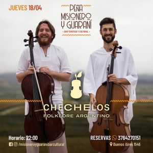La Semana Santa viene cargada de música en Misionero y Guaraní. El miércoles Jimmy Ledezma y Richard Cantero tienden puentes entre el Pacífico y el Paraná. El jueves llegan los Chechelos, un crossover de altura entre de ritmos populares ejecutados con violonchelos. El viernes Sonia Álvarez nos regalará una nueva dosis de su arpa mágina y cerramos el sábado con Gabriela Quintana y su impronta sureña vestida de litoral.