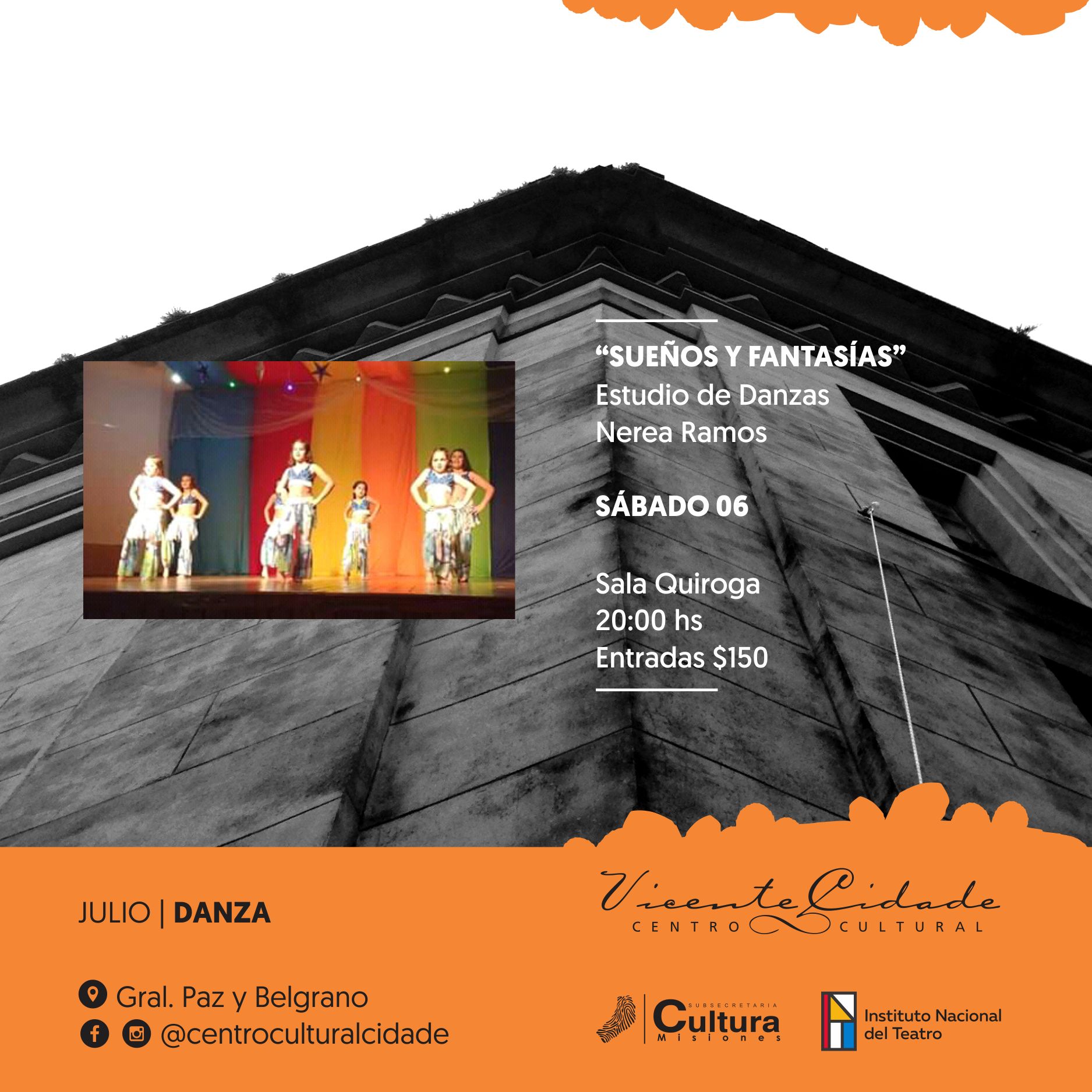 Danzas: El sábado 6 de de julio a las 20 horas el Estudio de Danzas Nerea Ramos presenta su espectáculo de invierno “Sueños y Fantasías”, donde los pequeños aprendices muestran sus primeras armas en escena. Entada $ 100