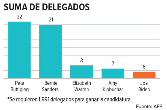 En las primarias del martes pasado, Biden quedó en quinto lugar, con solo 8.4 por ciento de los votos del estado.