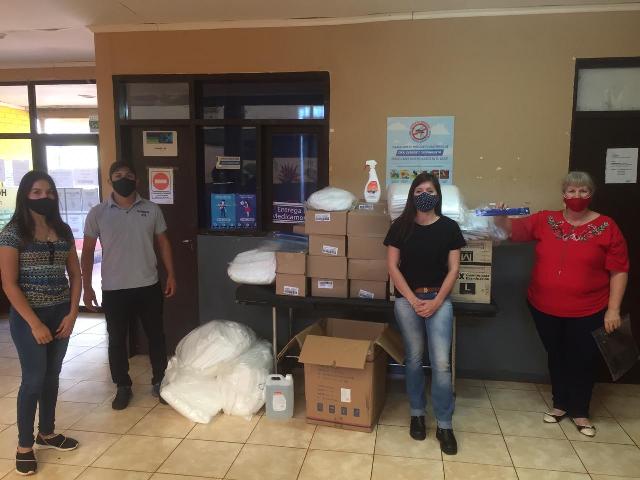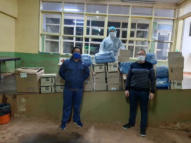 En esa línea esta semana se entregaron en total: 6.000 unidades de alcohol en gel x 250ml, 1.300 mamelucos, 26.000 barbijos quirúrgicos, 4.500 cofias, 2000 máscaras faciales, 200 litros de detergente más rociadores y 2.259 cajas de guantes látex x 100 unidades cada caja (225.900 guantes).