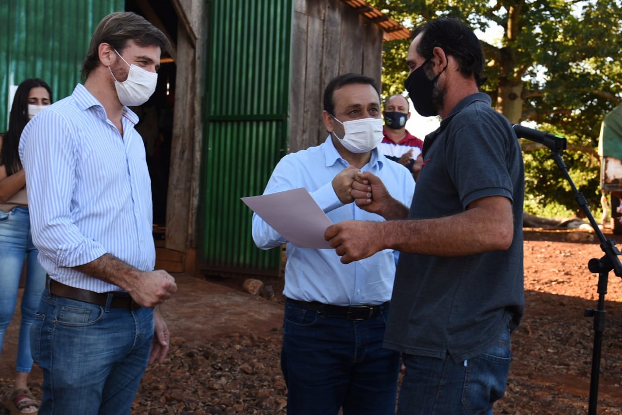 En la entrega, realizada en la chacra de uno de los productores de la Asociación Civil de Productores de Alimentos La Soberana, participaron el ministro del Agro y la Producción, Sebastián Oriozabala; el presidente del IPRODHA, Santiago Ros y miembros de las cooperativas beneficiadas.