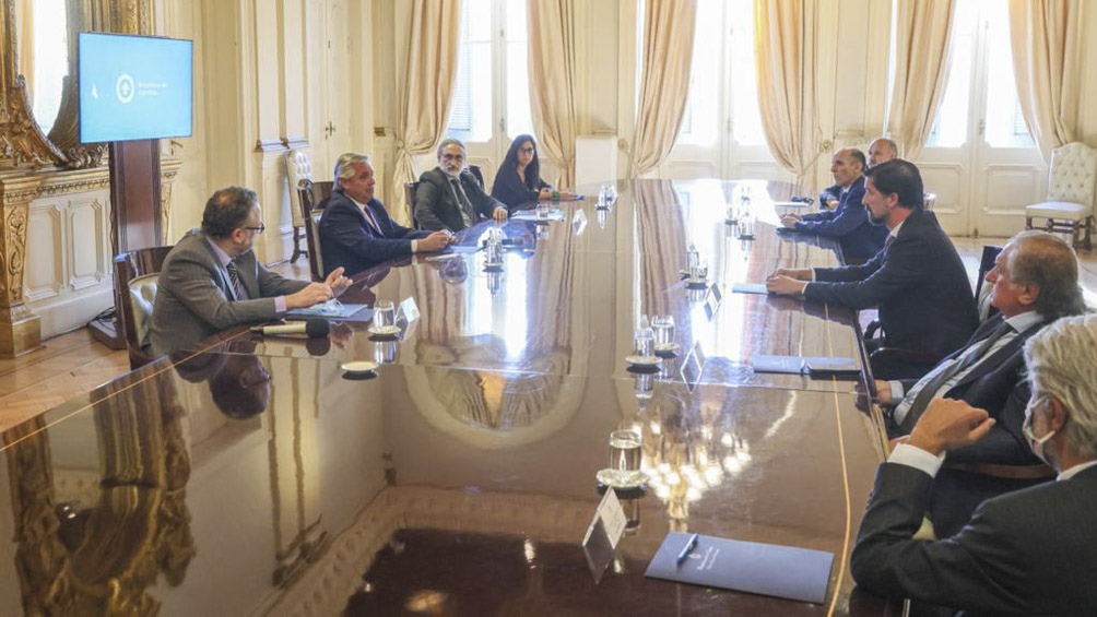 El presidente Alberto Fernández recibió esta tarde en su despacho de Casa Rosada a los ministros de Desarrollo Productivo, Matías Kulfas; y de Agricultura, Ganadería y Pesca, Luis Basterra; y a la secretaria de Comercio Interior, Paula Español; para sellar el acuerdo.