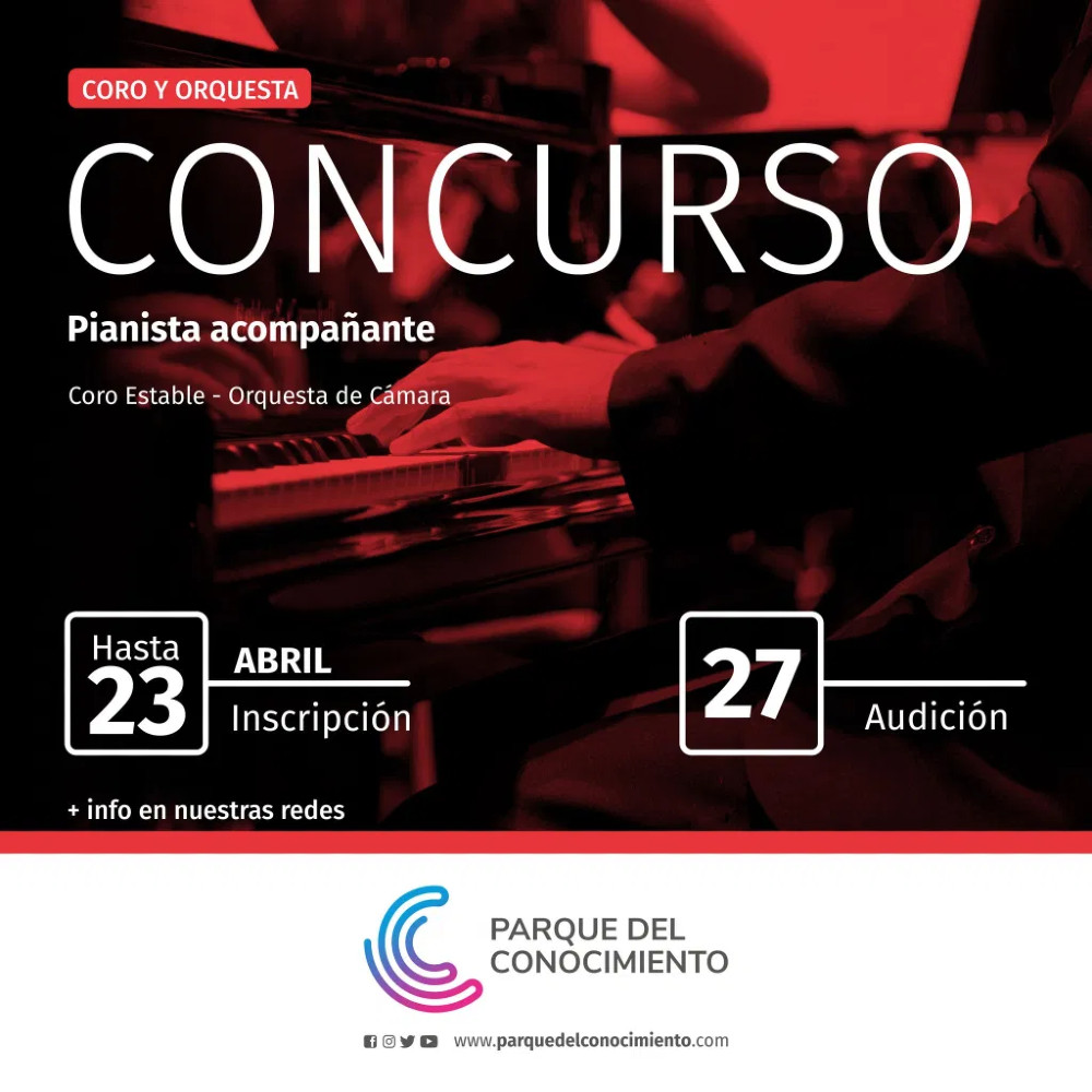 El Parque del Conocimiento convoca a pianistas a participar del concurso de antecedentes y audición pública para confeccionar el orden de méritos para cubrir un cargo vacante de pianista acompañante para el Coro Estable y la Orquesta de Cámara del Parque del Conocimiento.