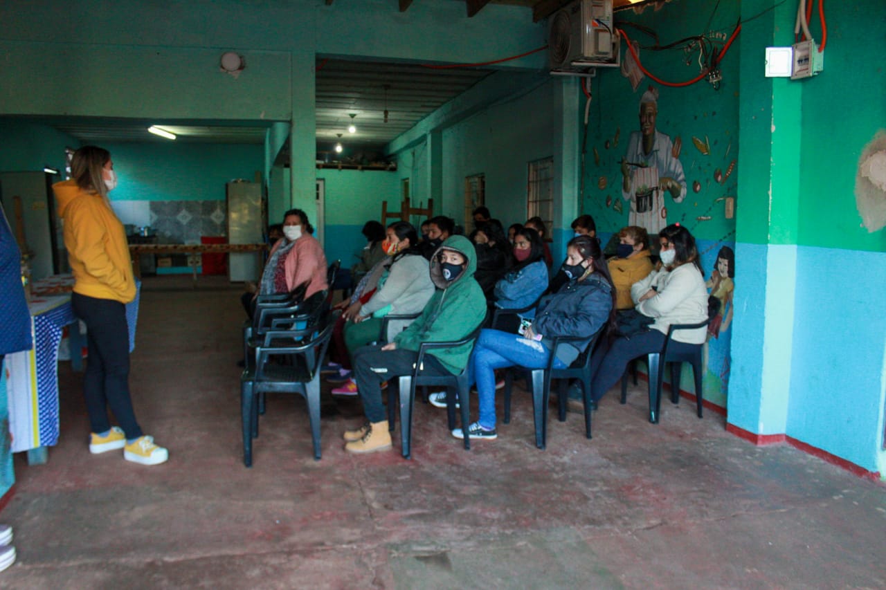 Desde el comedor Pancitas Llenas realizan capacitaciones de panadería, confección de barbijos, trabajos sobre telas, entre otras. “La idea es que las mujeres se empoderen, que no se queden en sus casas esperando a cobrar únicamente, que también se formen, se capaciten”, indicó Vensa López, encargada del comedor. Además, confirmó que alrededor de 50 mujeres se capacitan por cada taller.
