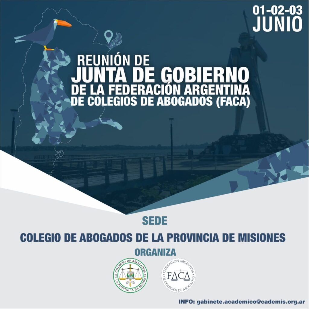 El 1, 2 y 3 de junio, la capital provincial será sede de la Junta de Gobierno de la FACA (Federación Argentina de Abogados), reunión de la cual participarán autoridades de más de 80 Colegios y Asociaciones de Letrados de todo el país.