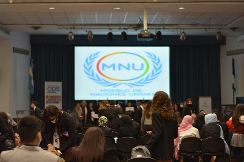 El evento se realizó este jueves 2 de junio en el Salón Eva Perón del Parque del Conocimiento. Se trata de una simulación del trabajo que realiza Naciones Unidas, donde los alumnos de entre 3er y 5to de distintos colegios secundarios de la ciudad debaten (previa investigación sobre las políticas que las diferentes naciones a las que representan) sobre un eje de temáticas de agenda mundial, que en esta edición fue ecosistemas y Economía: explotación pesquera y forestal.