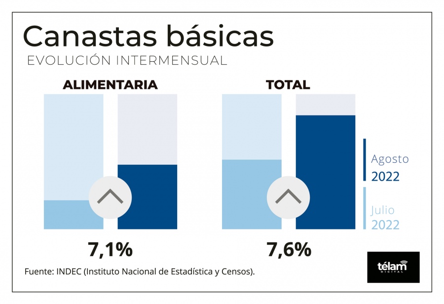 Entre agosto de este año e igual mes del 2021, el precio de la CBA se incrementó a 81,4% y el de la CBT a 75,2% .