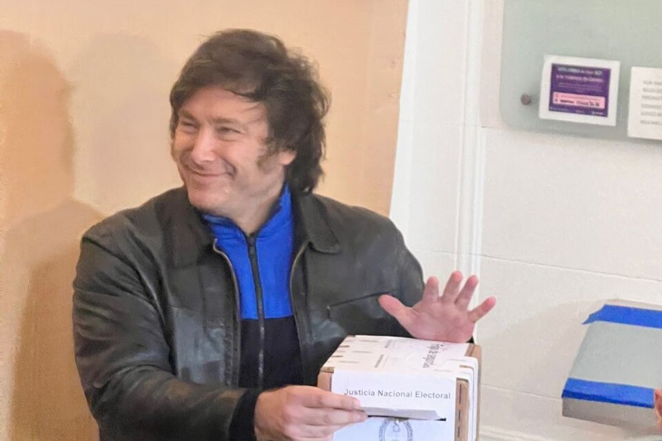 El candidato a presidente de La Libertad Avanza votó en la sede Medrano de la UTN; lo esperaron unas 300 personas, la mayoría jóvenes, y mucha prensa internacional; le cantaron el feliz cumpleaños y le arrojaron rosas a su auto.