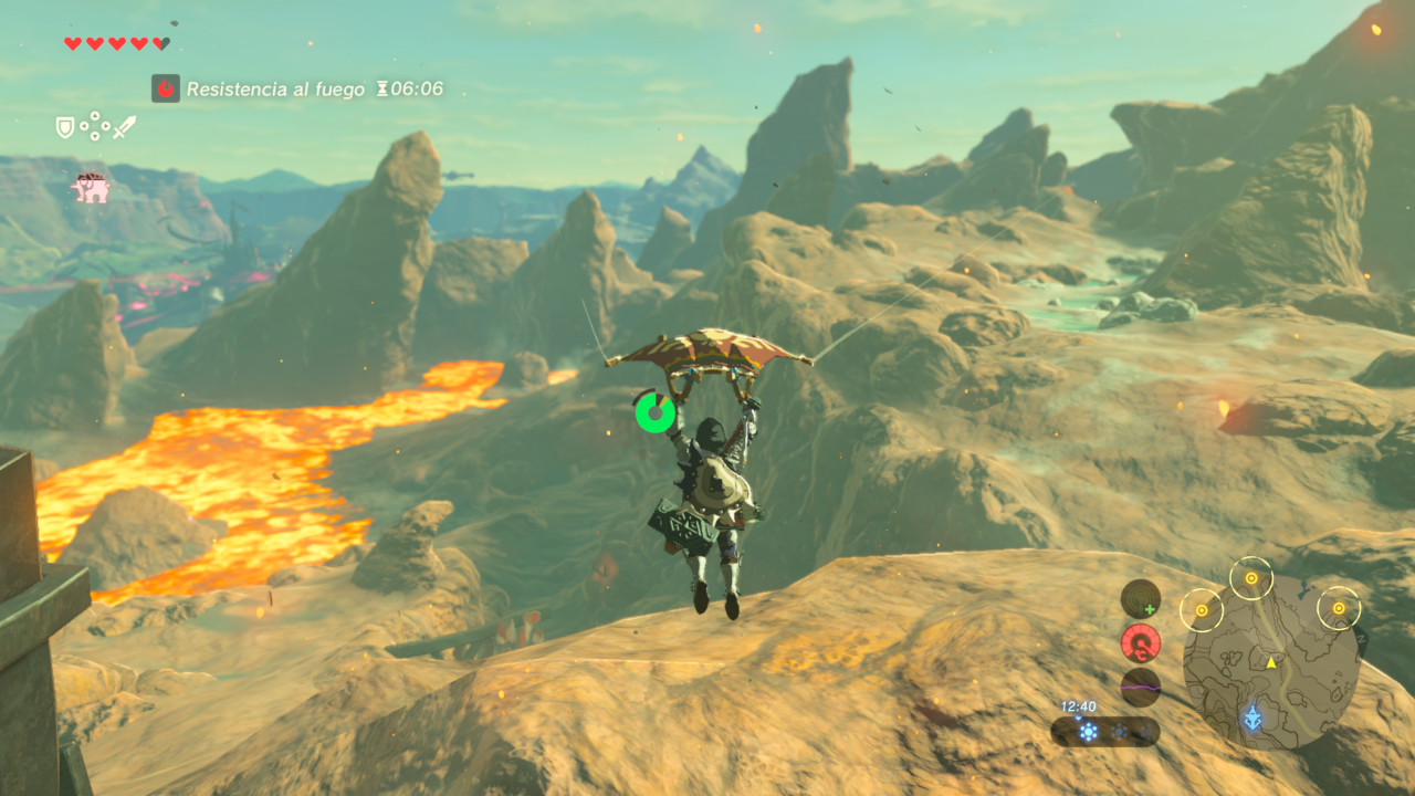 Montar a caballo, osos o ciervos, darle de comer a perros que te pueden salvar en momentos complicados, resolver los acertijos de Nyel, quien con canciones nos hace descubrir el modo de habilitar nuevos santuarios, buscar el récord mundial de paravela, subir a las montañas más altas, y después surfear sobre tu escudo para bajarlas, tirarle objetos de hierro a los enemigos usando el módulo de magnetismo de tu tableta para no enfrentarlos de cerca, hacer tiros de precisión con tu arco, usar la energía cinética de una piedra para trasladarte de un punto a otro más rápido (con el riesgo que eso trae aparejado), sacar cofres hundidos en el agua creando un bloque de hielo, recorrer un bosque encantado, reforzar tu equipo consiguiendo objetos, encontrar las fuentes de las hadas mágicas, volar en una balsa con la ayuda de globos, ingeniar soluciones alternativas a los santuarios, y así podría seguir muchos renglones más describiendo todo lo que se puede hacer con total libertad, tanta que, cuando te das cuenta ya llevás más de 20 horas de juego sin haber completado ninguna misión principal, y la pobre Zelda te sigue esperando en el castillo…