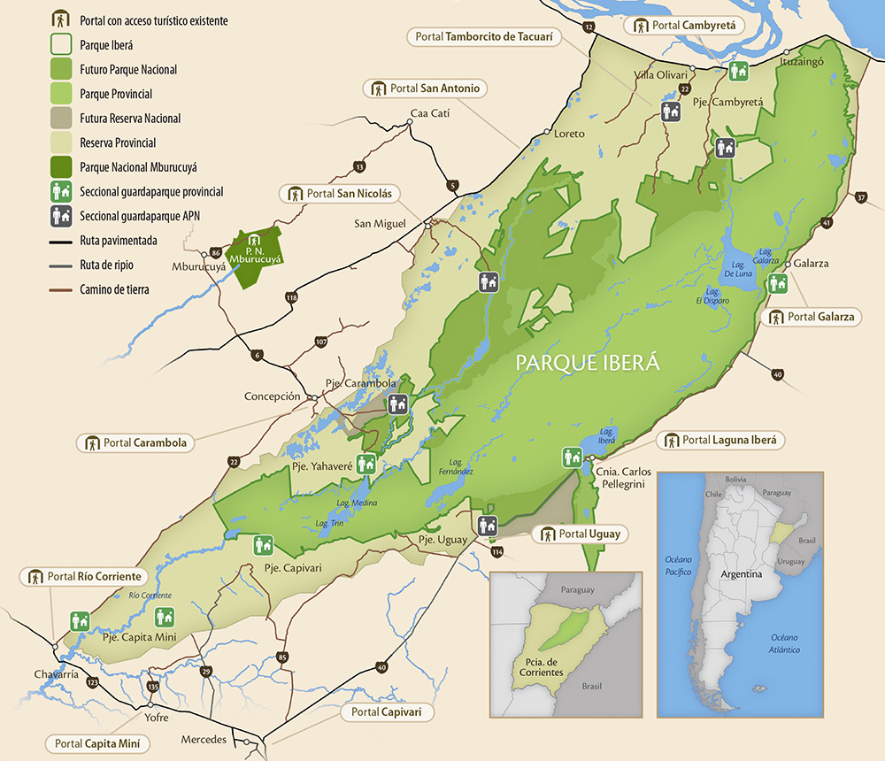 Junto al parque provincial, conforman el Gran Parque Iberá de más de 700.000 hectáreas, uno de los más grandes del país