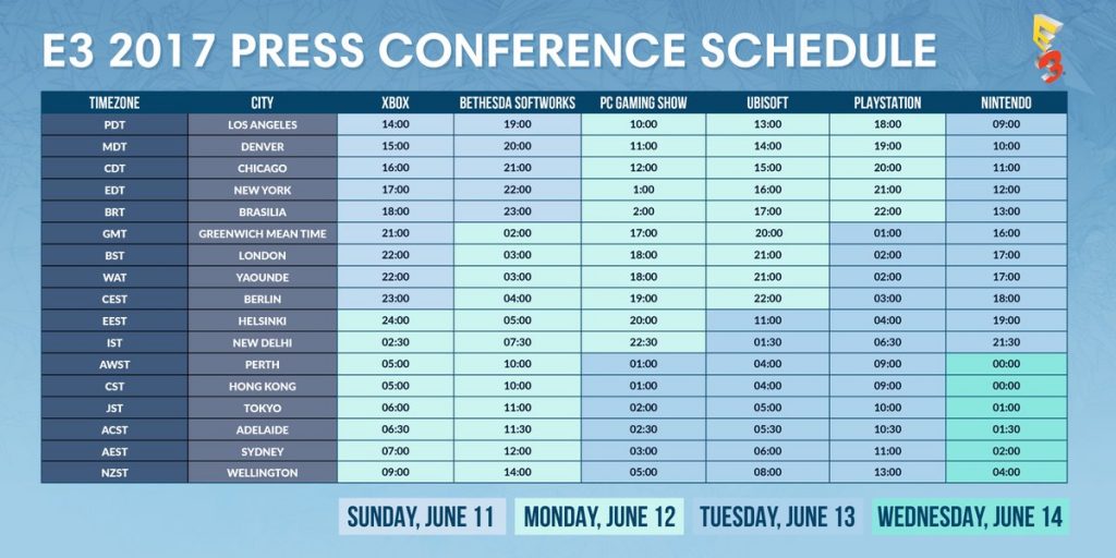 La E3 dispone de un salón de exhibición para desarrolladores, inversores e interesados en publicar los títulos, presentando los productos que serán puestos a la venta próximamente. Además, en los días previos, los mayores empresarios de la industria hacen conferencias donde adelantan lo que van a mostrar, y corren cronogramas entre los fans, que necesitamos saber entre el 8 y el 11 de junio, lo que vamos a ver entre el 12 y el 14 en el Los Angeles Convention Center. Sí, objetivamente son un par de días, pero teniendo en cuenta que desde hace meses se viene especulando qué van a mostrar, sirve para calmar la ansiedad.
