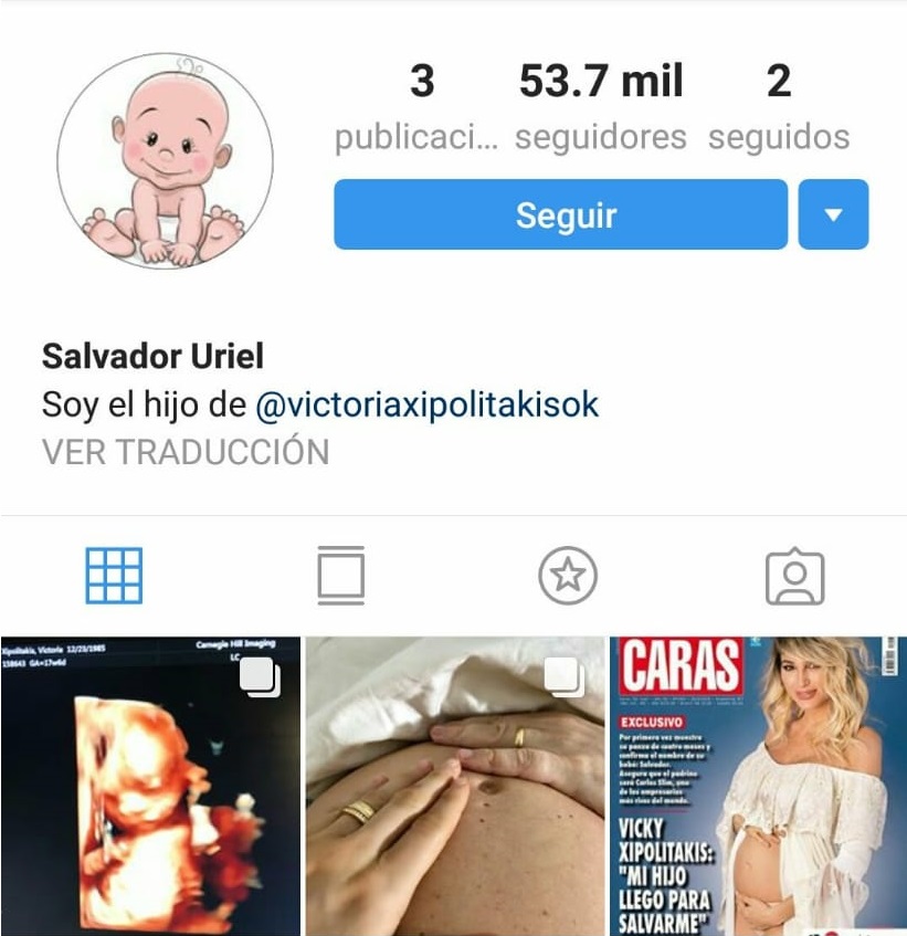 En el mes de junio, luego de una producción fotográfica para la revista Caras, en la que formalmente presentó a su hijo en sociedad, y siguiendo el éxito de perfiles en redes sociales de otros bebés de famosos, como Mirko Wiebe, hijo de Marley (casi 2 millones y medio de seguidores en instagram) o de Olympia O´Hanian), hija de Serena Williams (más de medio millón), Vicky decidió que su bebé nonato, Salvador Uriel, tenga su propia red social.