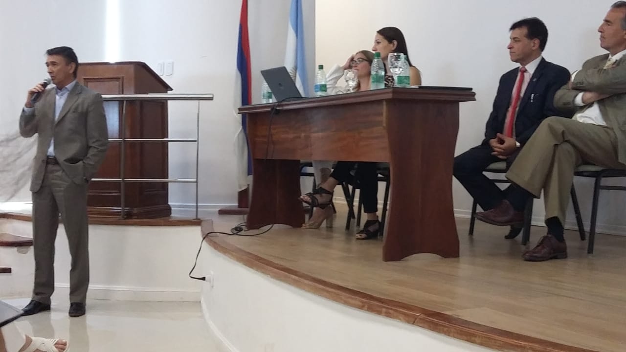 El ministro de Trabajo y Empleo de la Provincia, Juan Carlos Agulla participó hoy como invitado a la jornada organizada por el Colegio de Abogados de Misiones, a fin de analizar los fundamentos e impacto que podría presentar la ley de Riesgos de Trabajo, y que contó con la asistencia de un nutrido grupo de profesionales del derecho, como también de personas vinculadas al sector.