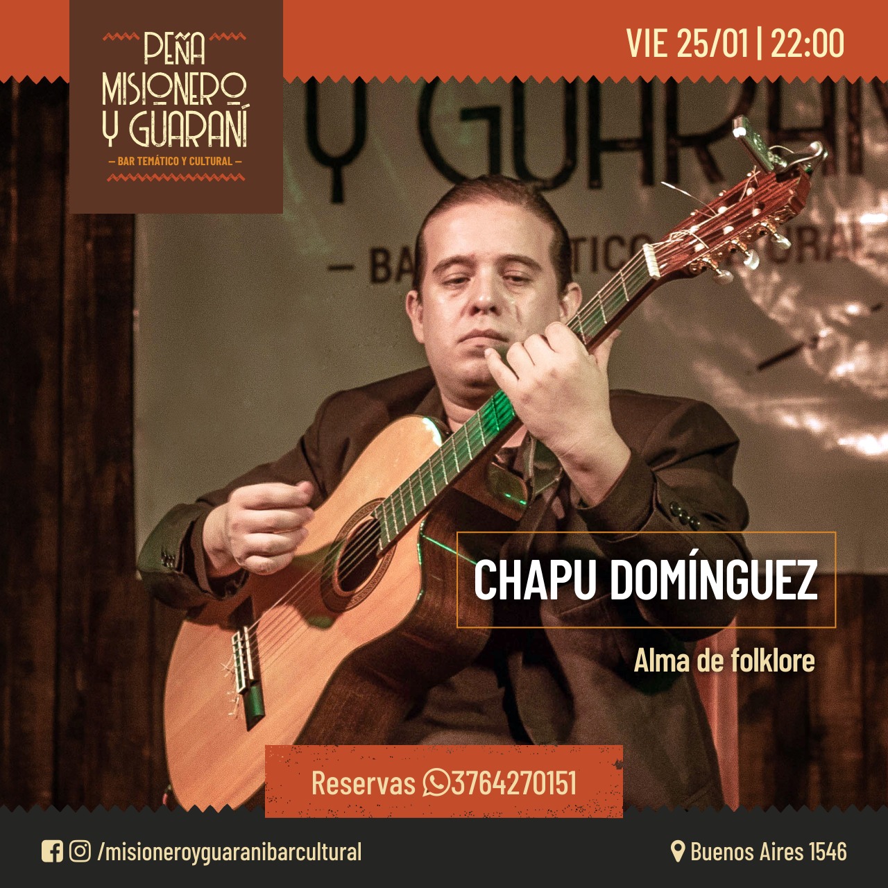 Jorche “Chapu” Domínguez regalará una noche con todo el cancionero popular argentino. Músico versátil como pocos, el Chapu aprovechará para festejar los siete años desde que dejó su Formosa natal para radicarse en la Tierra Colorada.