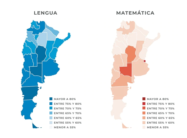 En lengua, CABA (87,9%), Tierra del Fuego (83,6%) y La Pampa (83,3%) son las jurisdicciones con mayor porcentaje de estudiantes en los niveles de desempeño altos -satisfactorio y avanzado-. En matemática también lidera CABA (75,3%) y siguen La Pampa (70,3%) y Córdoba (68,2%).