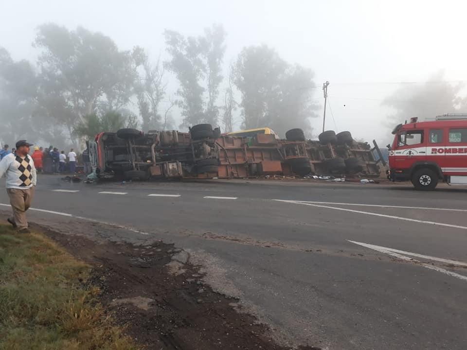La colisión se produjo cerca de las 7 en la intersección de la ruta 3 y la 19 entre un colectivo de la empresa Crucero del Norte que viajaba desde Misiones y un camión Scania, tras lo cual, por el momento, 20 personas resultaron lesionadas, dos de las cuales fueron trasladadas a un hospital de La Francia. Según indican periodistas locales, el chofer del colectivo, Cristian Guzowski, falleció a raíz del impacto.