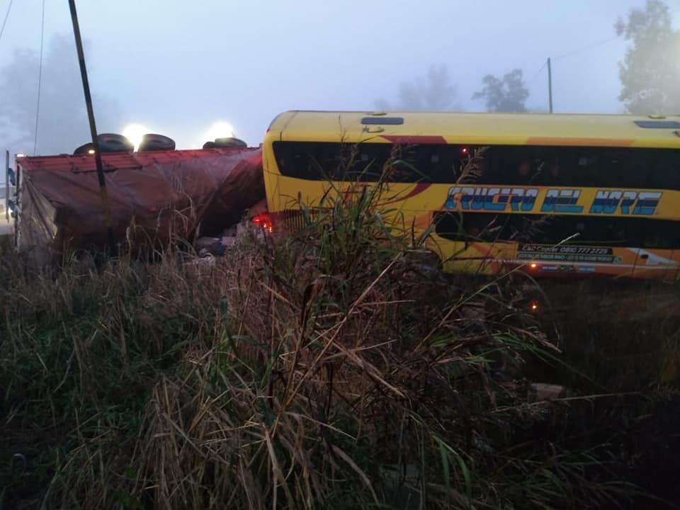 Murió el chofer del micro Crucero del Norte siniestrado esta mañana en la ruta 19, jurisdicción de La Francia. Hay 20 heridos. Por ahora tránsito autorizado sólo en media calzada.