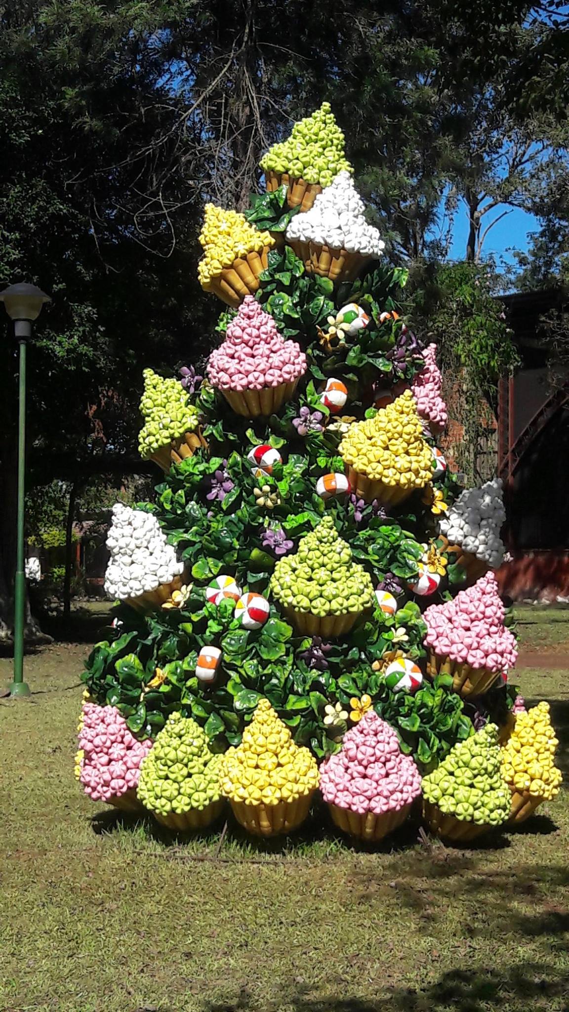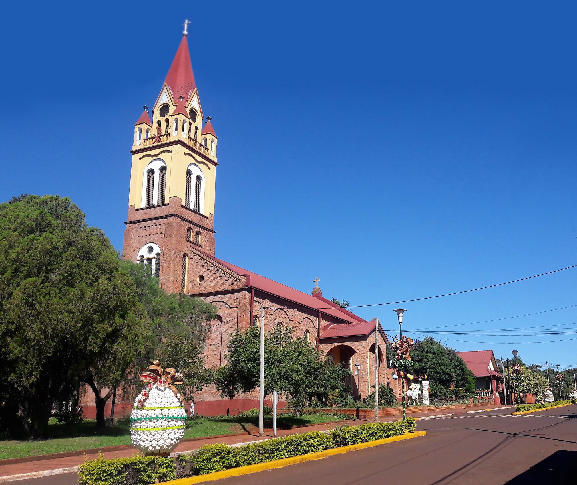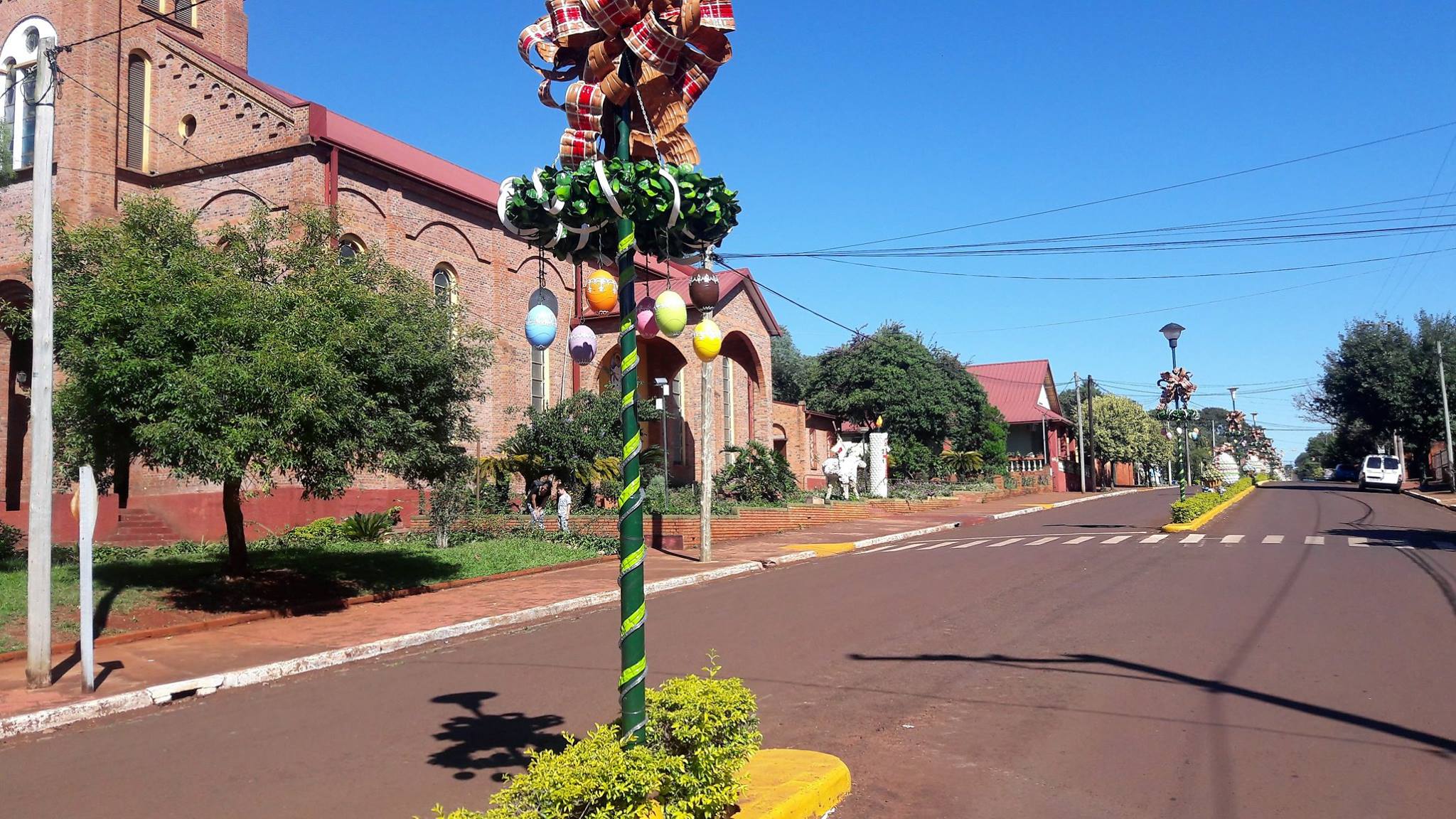 Las fotos las publicaron los chicos de Duomo Helados, que ahora desde su nuevo local en Capioví tienen una vista privilegiada a la Av. San Luis Gonzaga que está completamente decorada, al igual que sucede en Navidad, para celebrar las Pascuas.