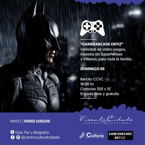 Domingo de Video juegos: El domingo 5 de mayo desde las 18:00 hasta las 21:00 horas en el Barcito del Centro Cultural Cidade se suma una alternativa de entretenimiento para toda la familia en la cual podrán venir a divertirse con una variedad de video juegos de las consolas tradicionales en las cuales padres e hijos podrán disfrutar de un buen momento. La entrada es libre y gratuita.