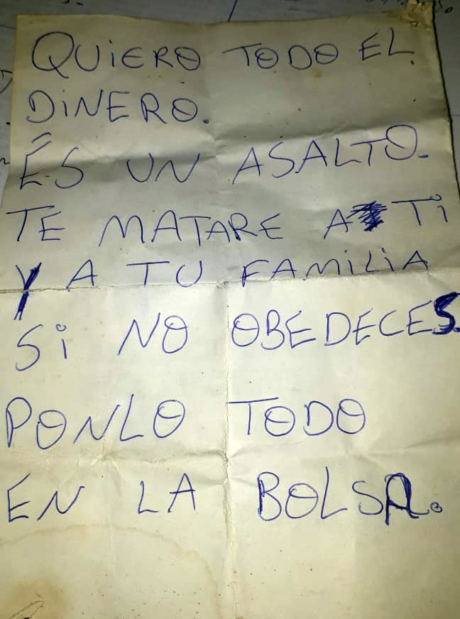 El primer hecho se registró en un hotel cuya empleada narró que el involucrado le exhibió la nota pero que sin embargo huyó al notar que era filmado por las cámaras de seguridad.