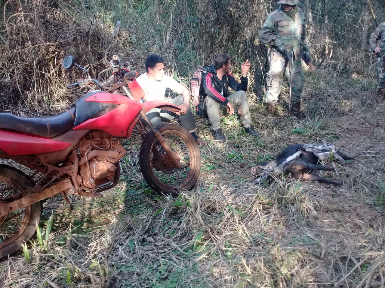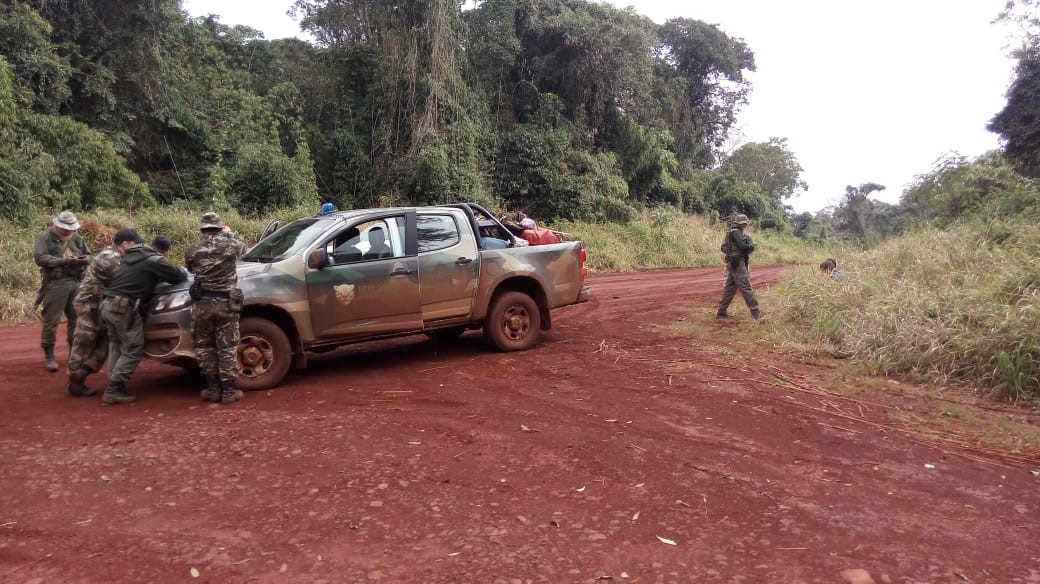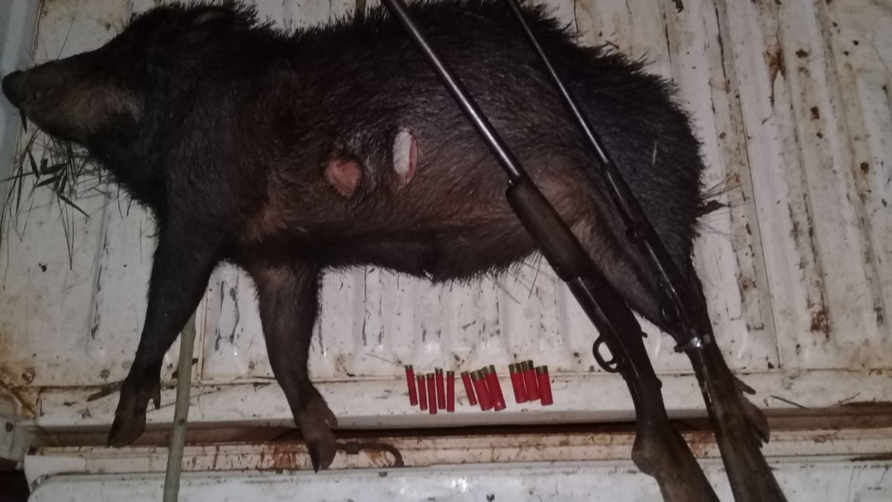 En una recorrida que se realizo el pasado fin de semana en conjunto entre Guardaparques del Ministerio de Ecologia, personal de Arauco y personal policial Ecolacustre por la zona del Parque provincial Esperanza y en una caminara de rutina por la reserva Aguaray – mí, límite con este parque, en un camino interno se observó una motocicleta escondida entre las maleza. Luego de unos minutos de espera en el lugar, los agentes de conservación escuchan que se aproximan dos personas, luego de un acercamiento se logra determinar que eran dos hombres de 30 y 33 años de edad ambos domiciliados en Delicia 33. El mayor de los identificados mencionó ser el propietario de la motocicleta que se encontraba escondida en el trillo, en tanto que su acompañante fue sorprendido con una especie de pecarí labiado.