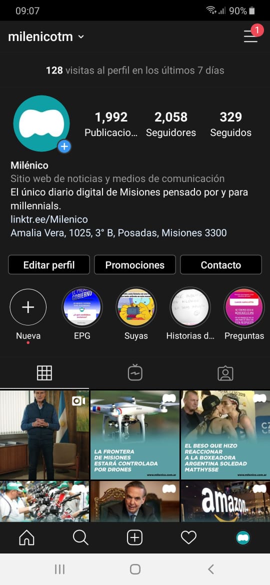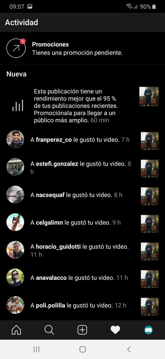 Un punto importante a destacar es que el modo oscuro no es completamente negro en todas las secciones. En la barra inferior, ahí donde se encuentran los ajustes, la opción del perfil de usuarios o la pantalla de las notificaciones tiene un tono grisáceo. En las demás zonas como el fondo o los botones de “Seguir” y “Enviar mensaje” sí son completamente oscuros.