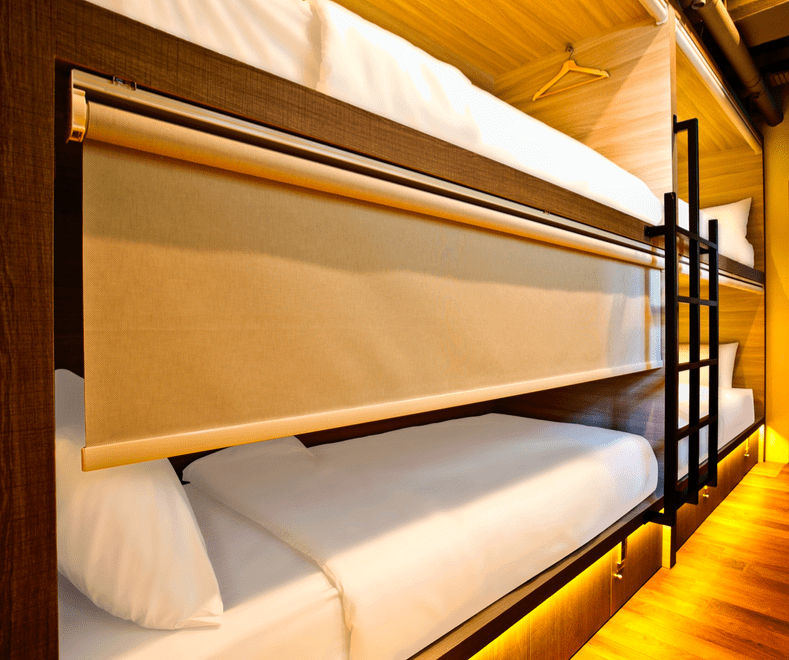 - Una cortina blackout le da privacidad a la unidad de alojamiento y evita la claustrofobia, una de las contras de estas iniciativas en sus primeros pasos.