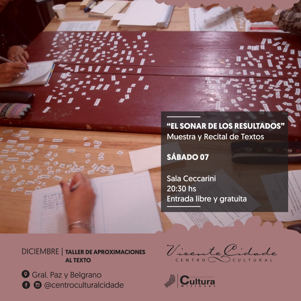 La invitación es para el sábado 7 de diciembre, inicia a las 20:30 y se extiende hasta la media noche, en la sala Marisil Ceccarini del Centro Cultural Cidade. El espacio es calientito, pueden llevarse tereré, líquidos refrescantes; si se animan, un matecito. Escribiremos, leeremos, escucharemos, cantaremos, reiremos, lloraremos (si nos animemos) y mismo que nos abrazaremos (si encendemos). Amigues que llevan la música dentro, les amigues del sonar, acompañarán la velada. Entrada libre y gratuita.