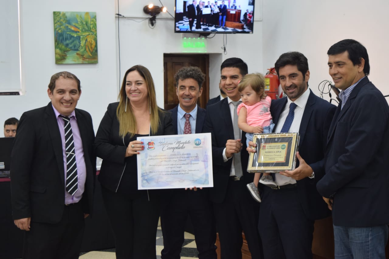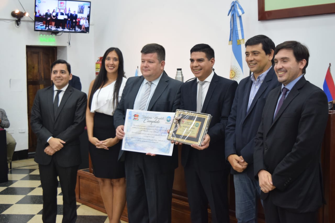 Los concejales Manuel Sánchez, Miguel Ángel Acuña, Natalia Giménez, Andrés Mutinelli y Juan Rossberg; fueron los seis concejales que cerraron un ciclo dentro del Deliberativo, mientras que, los ediles Francisco Fonseca y Fernando Meza fueron reelectos en los comicios de junio y lograron renovar sus bancas por cuatro años más. “Tanto usted, como a mí y al Defensor del Pueblo nos han vuelto a elegir, han vuelto a confiar en nuestra gestión. Agradecer a todos mis compañeros de trabajo. Siempre ha primado el buen trato, para que la sociedad pueda ir mejor. El cariño, la cordialidad y el respeto a cada uno de los del Concejo Deliberante. Seguiremos siendo compañeros durante otros cuatro años y para mi seguirá siendo un gusto trabajar con ustedes. Vamos a llegar a buen puerto siempre priorizando el trabajo colectivo, así lo entiende desde hace 120 años, nuestro partido político y siempre hay que ser agradecido, más que nada del aspecto humano que tuvieron todos y que siempre se suele dejar de lado por la vida política”, expresó el cjal. Fonseca.