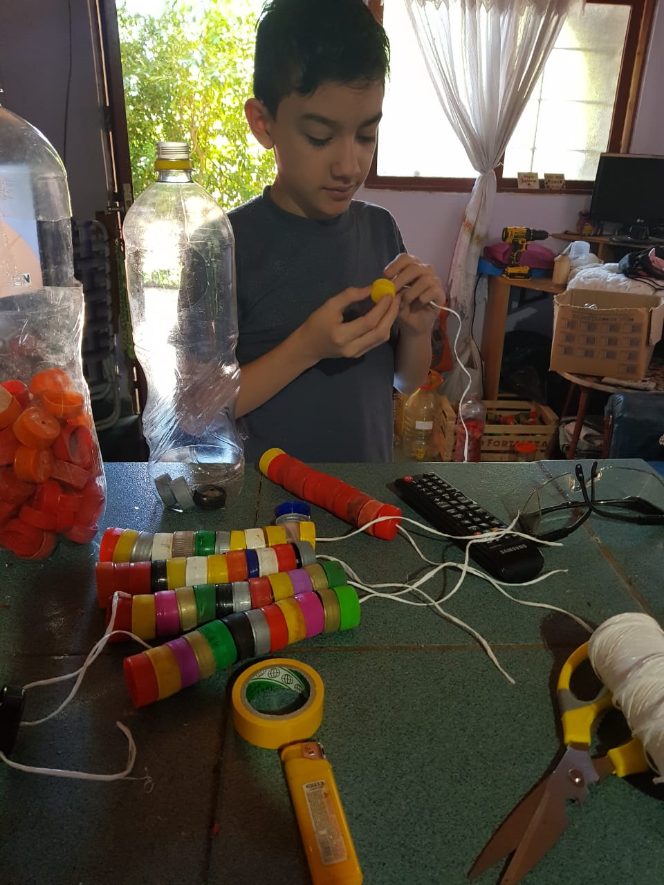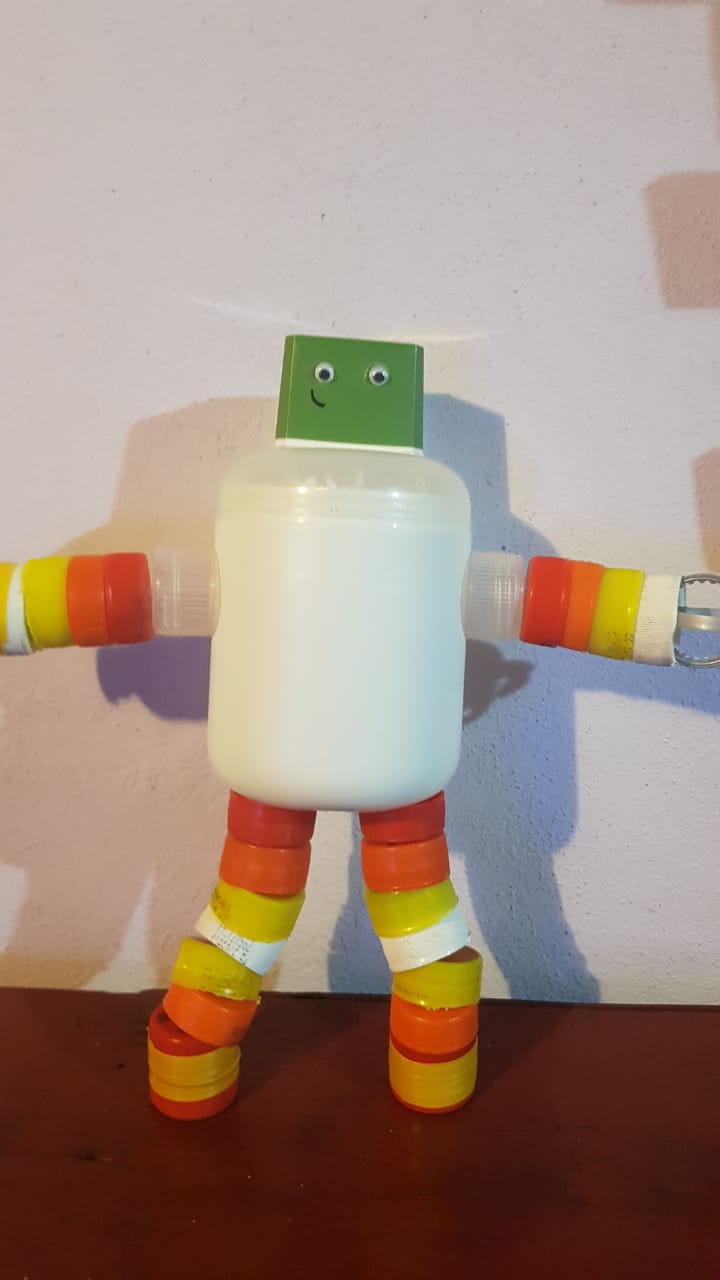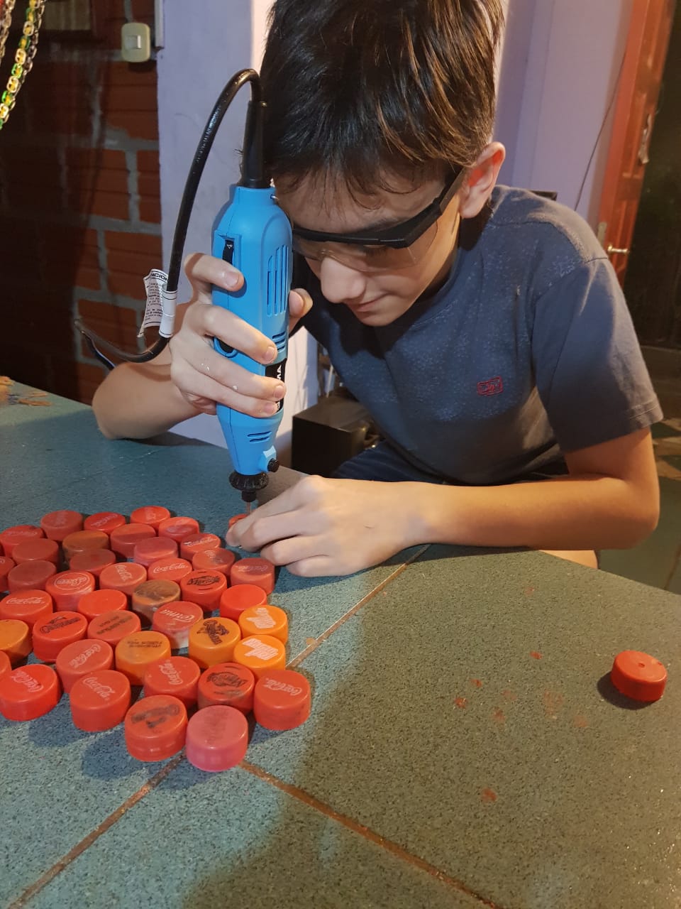 Hablo con mis compañeras en la escuela que me juntan, otras que se fueron enterando ahora y me traen la parte de los sifones, que vamos viendo como adaptamos. También tapas de perfumes, desodorantes, voligoma, estuches de chocolates, vemos que no todo se perfora entonces vemos cómo podemos adaptar y si el pegamento funciona para ese material”.