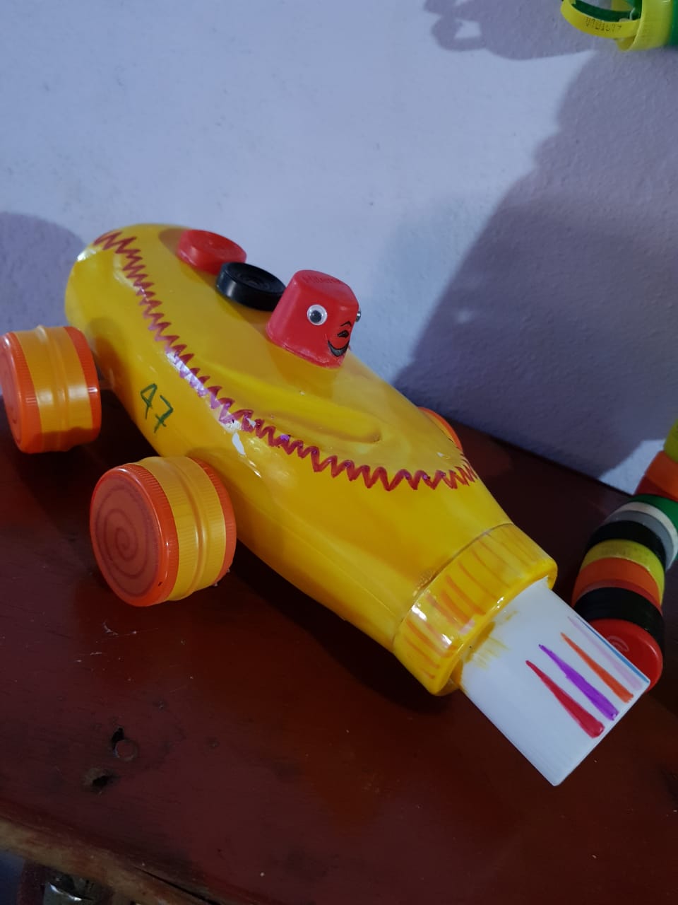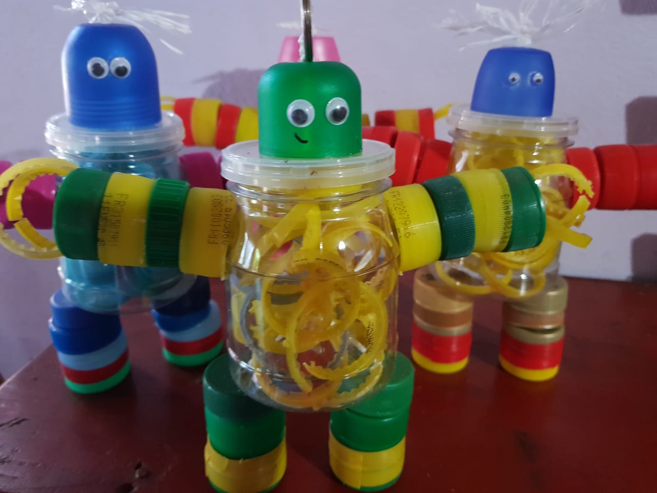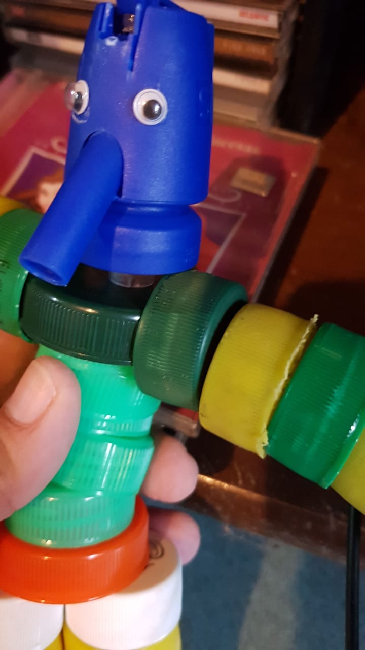 Hablo con mis compañeras en la escuela que me juntan, otras que se fueron enterando ahora y me traen la parte de los sifones, que vamos viendo como adaptamos. También tapas de perfumes, desodorantes, voligoma, estuches de chocolates, vemos que no todo se perfora entonces vemos cómo podemos adaptar y si el pegamento funciona para ese material”.