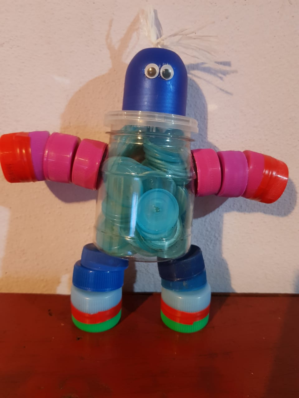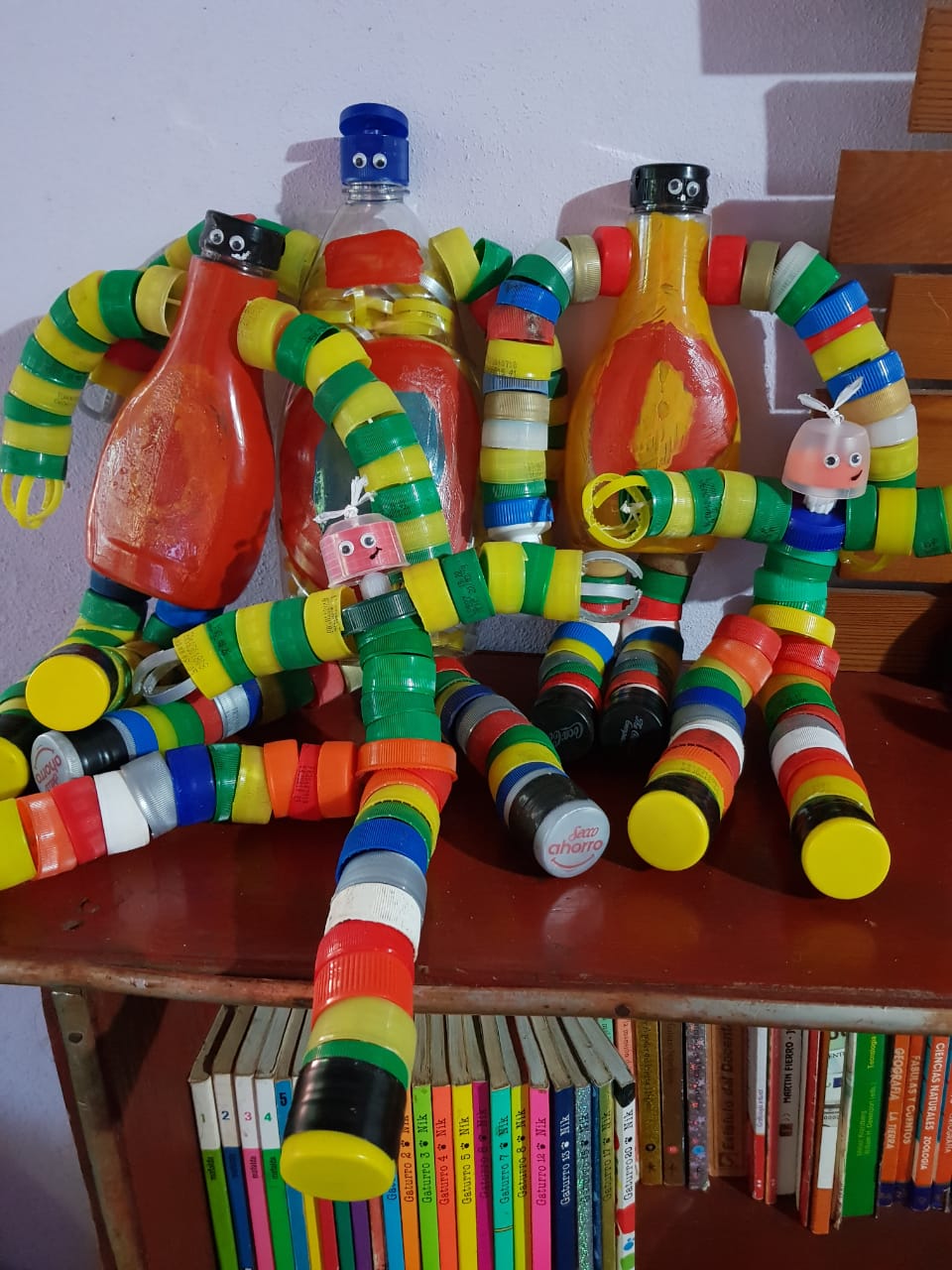 María Ponce y su sobrino, Santino, idearon muñecos para mitigar los difíciles momentos por los que atraviesan los chicos internados en el Hospital de Pediatría, de Posadas. Antes de finalizar el 2019 entregaron 69 creaciones para chicos de hasta 15 años. Cada juguete lleva unas 35 tapitas.
