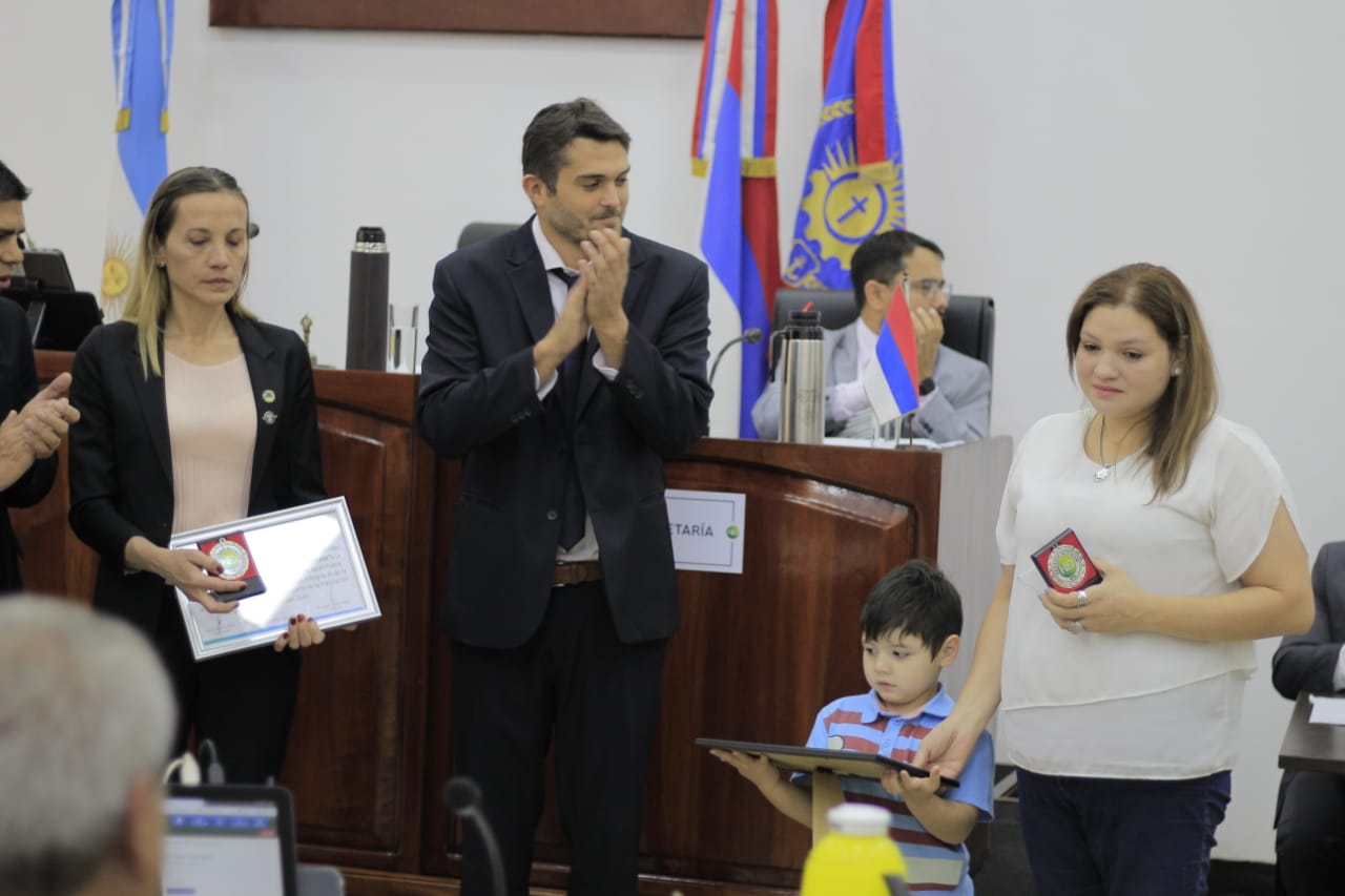 Con profunda emoción, Mateo Ortiz y su madre, Griselda Alvarenga recibieron la medalla del cabo Jorge Isabelino y agradecieron profundamente a los concejales por homenajear al padre de su hijo, luego de tanto dolor. Sin palabras que emitir, la hermana de la teniente, Silvina Krawczcyk, también recibió una medalla por la valía de Eliana.