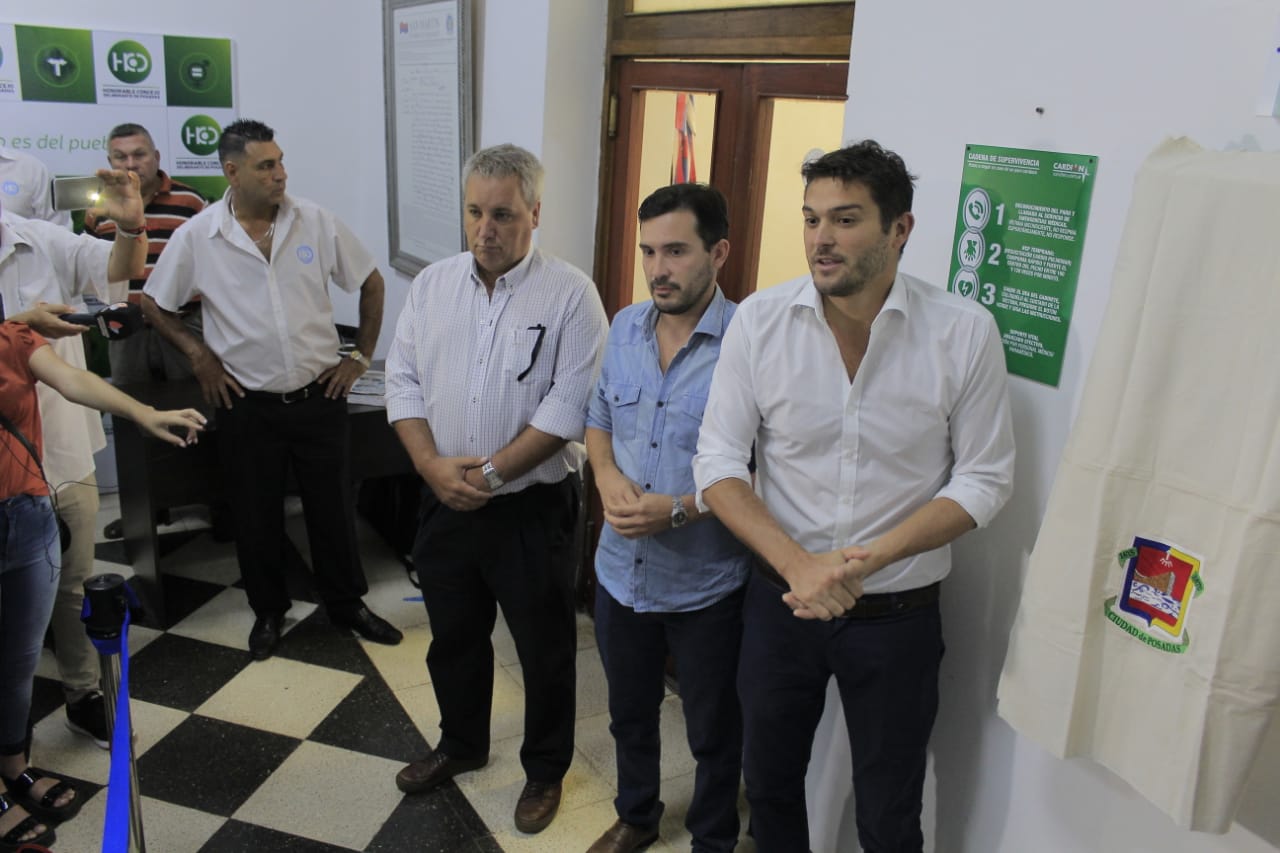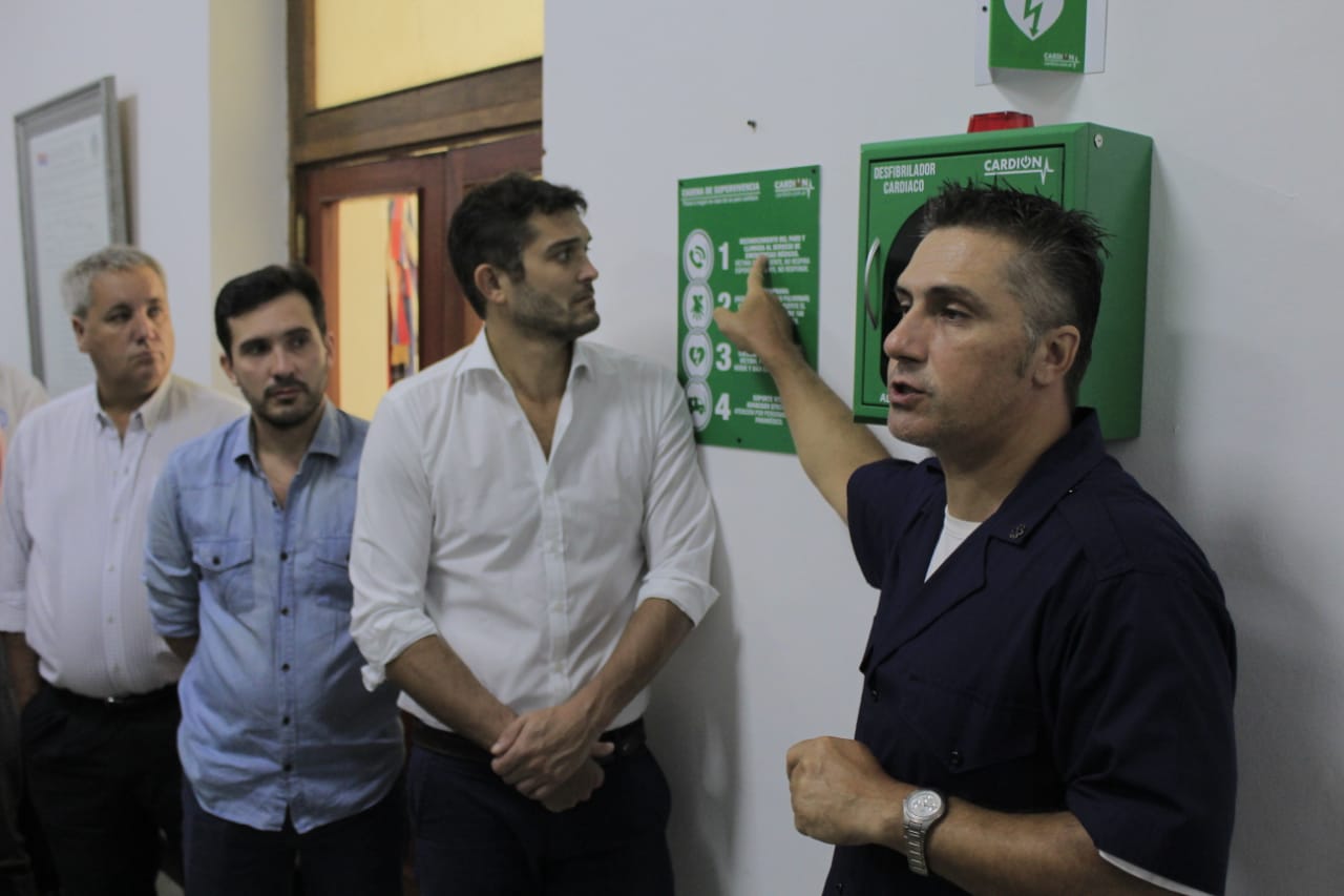 Este viernes, el presidente del Concejo Deliberante, Facundo López Sartori, junto al autor de la iniciativa, concejal Martín Arjol y el técnico Superior en Emergencias Médicas, Diego Panozzo, inauguraron el primer desfibrilador de la institución, el cual, contribuirá a salvar vidas y conducirá a Posadas a convertirse en la primera localidad cardioprotegida.