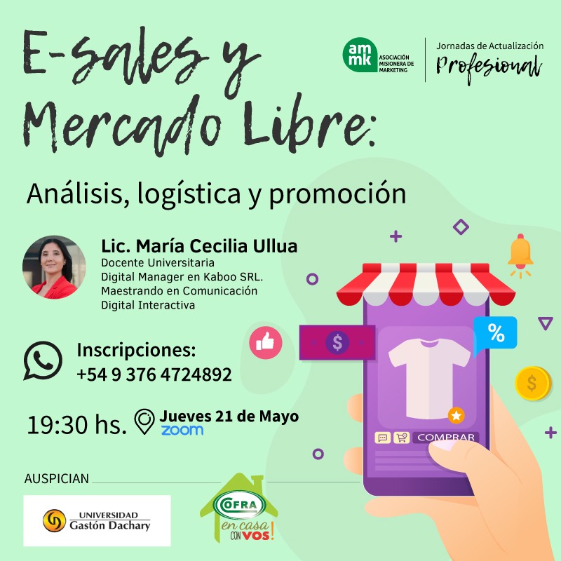 La Asociación Misionera de Marketing (AMMK) invita a participar de la Jornada de Actualización Profesional “E-sales y Mercado Libre: análisis, logística y promoción”, este jueves 21 de mayo, a las 19.30hs, a través de la Plataforma Zoom.
