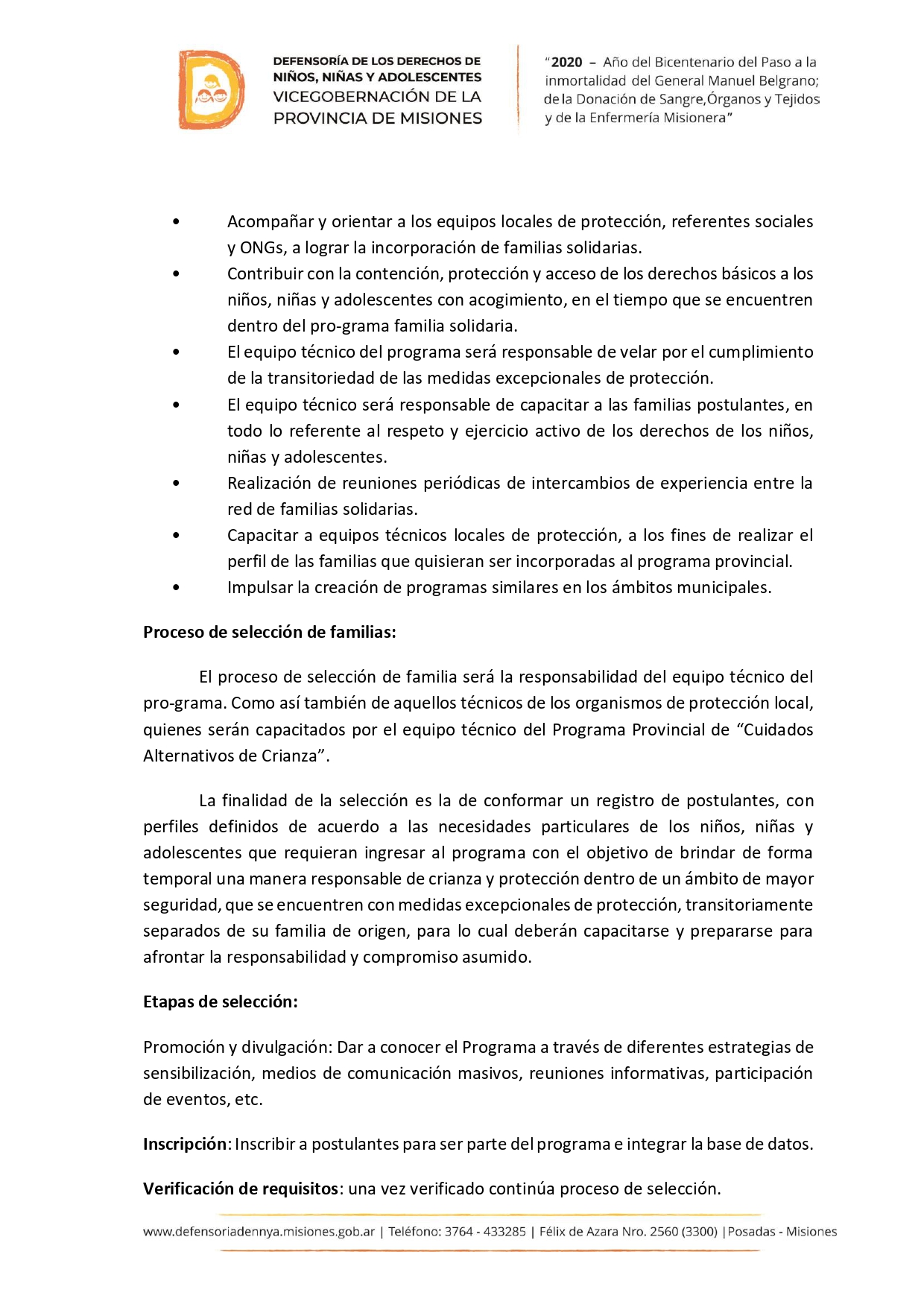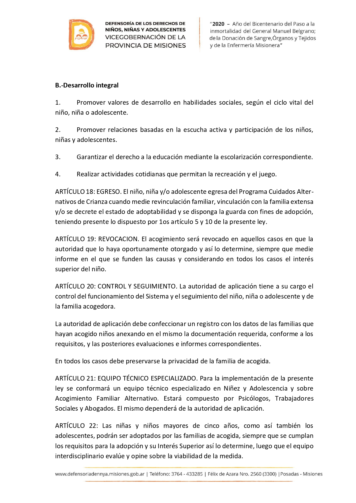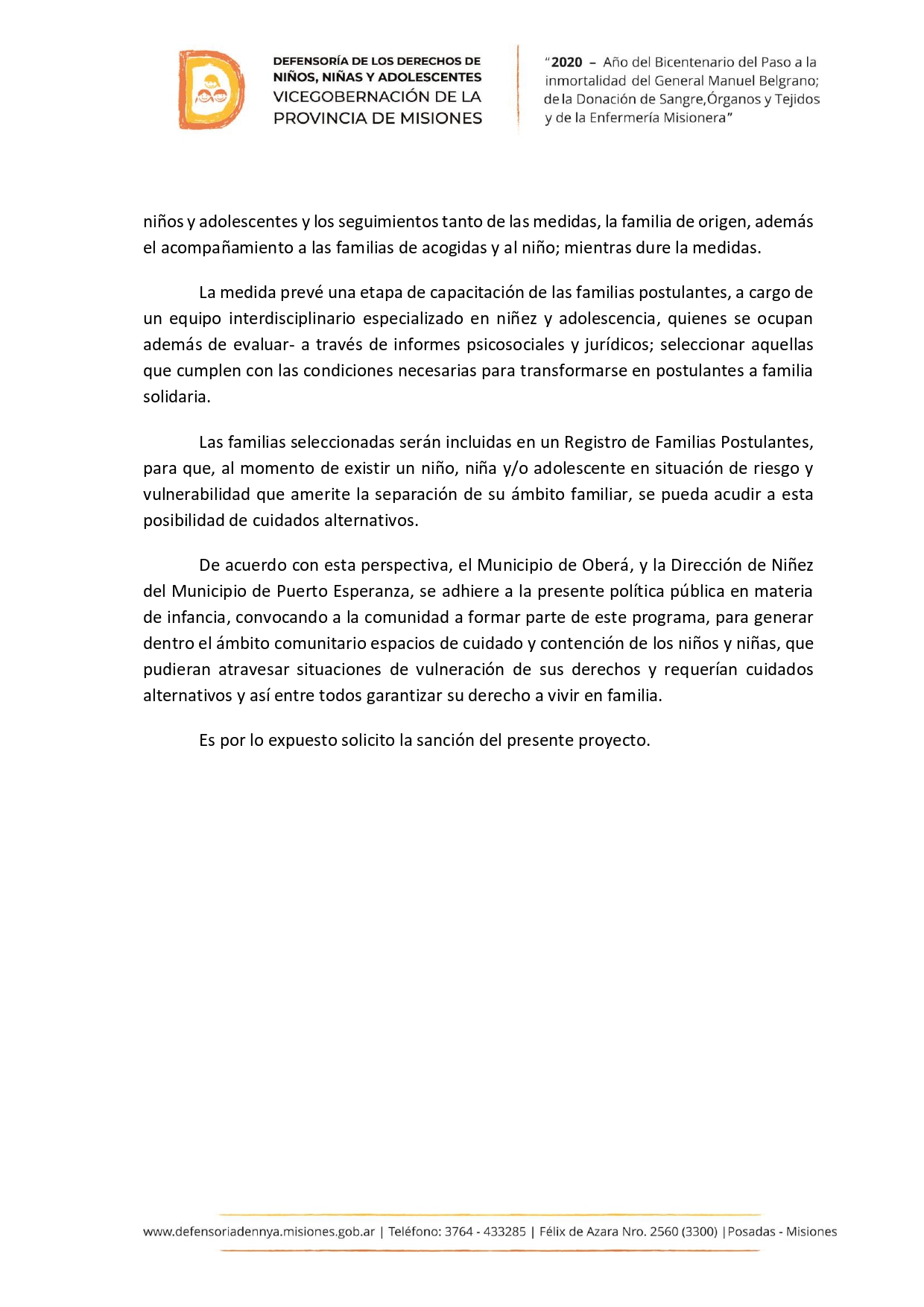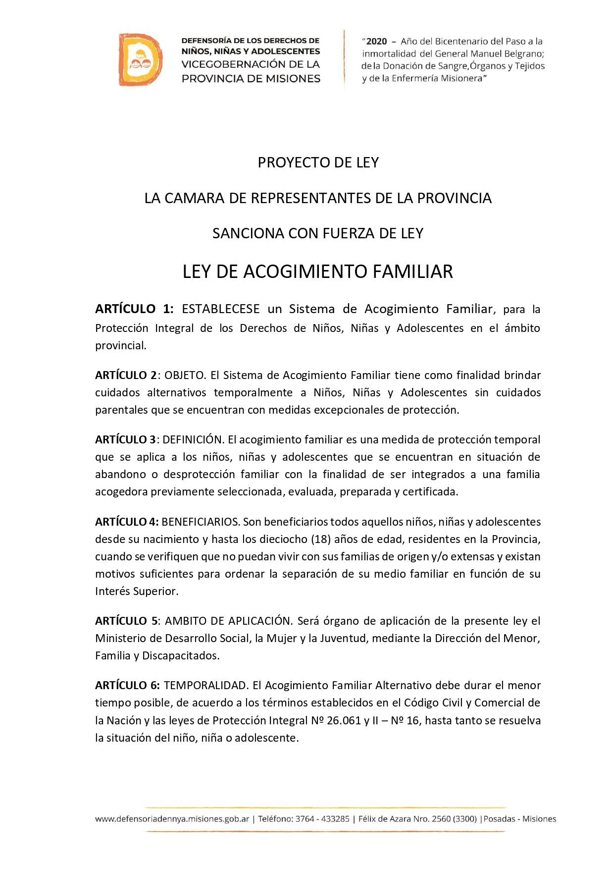 El `proyecto de Ley de Acogimiento Familiar fue presentado este año, como anexo, en el Informe de Gestión de la Defensoria de Niños, Niñas y Adolescentes de la Vicegobernacion de Misiones.