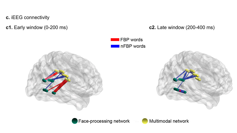 Además estas redes neuronales en apariencia diferentes, las semánticas y las faciales, se comunican entre sí. De hecho, descubrieron que, durante el procesamiento de palabras faciales, la conectividad entre ambos circuitos es mayor en la ventana de tiempo temprana, es decir, al inicio de la interacción, en los primeros 200 milisegundos (ms). “Cuando uno lee las palabras de cara, el diálogo entre circuitos faciales y los semánticos es mucho más intenso al principio que más tarde, entre los 200 y 400 ms”, dice Birba. “Esto también señala la rapidez y lo constitutivo que es el rol de los circuitos faciales en este caso”.