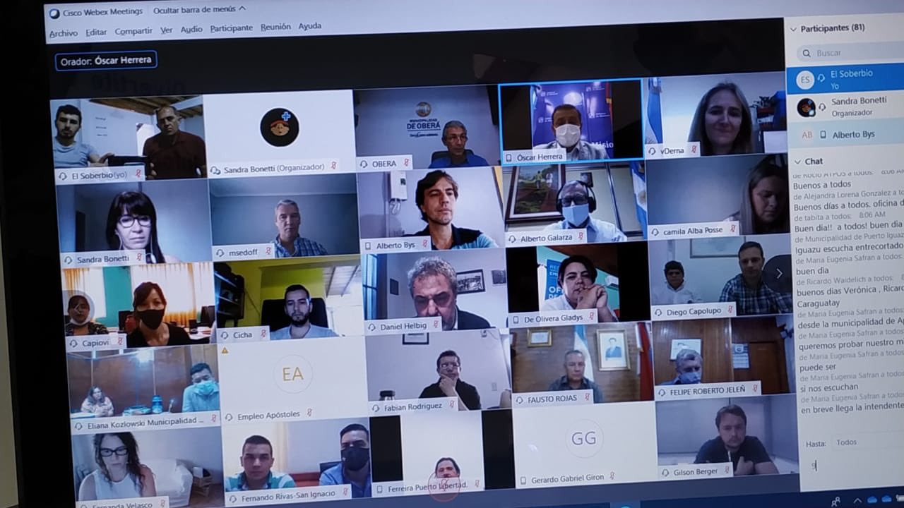 En la videoconferencia, participaron los intendentes como así también los coordinadores del área de empleo; los representantes del Ministerio de Trabajo de la provincia, a cargo de Silvana Giménez y de la Universidad Popular de Misiones (UPM) que tiene al frente a Laura Traid.