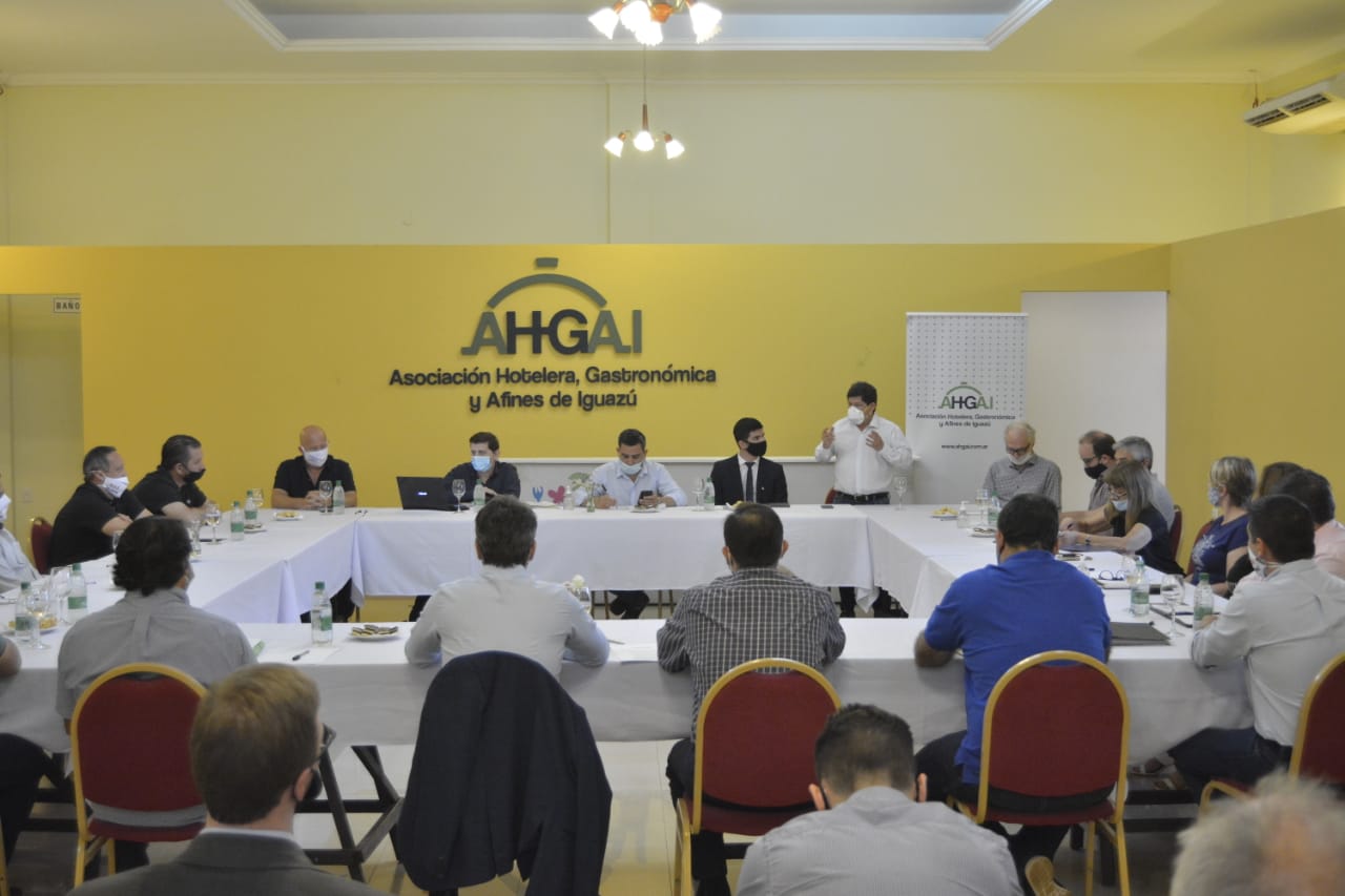 En este marco, los ministros de Turismo, José María Arrúa; de Hacienda, Adolfo Safrán; de Salud, Oscar Alarcón; y el director de la Agencia Tributaria de Misiones, Rodrigo Vivar, se reunieron con el Comité de Crisis S.O.S Iguazú para escuchar las diferentes problemáticas de los sectores relacionados al turismo.