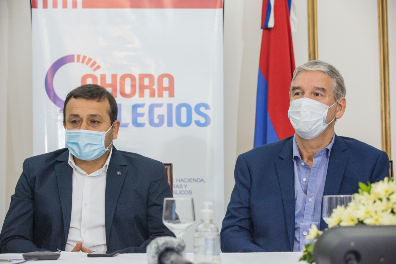Durante la presentación del programa acompañaron al Mandatario provincial los ministros de Hacienda, Adolfo Safrán y de Educación, Miguel Sedoff; el presidente del CGE, Alberto Galarza; la presidenta del AIPEM, Delicia Olivera y el gerente del Banco Macro Miguel Ayala.