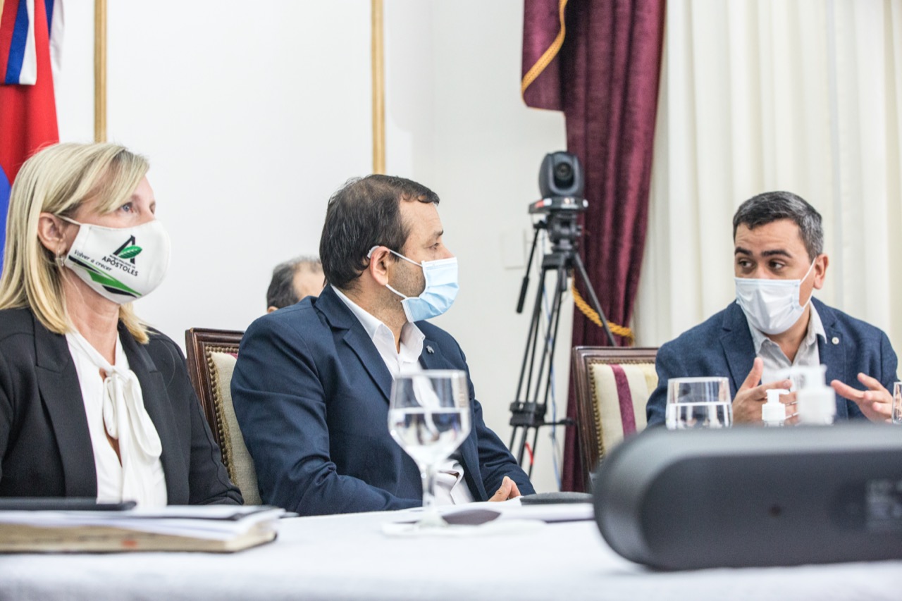 Durante la videoconferencia de prensa el Gobernador estuvo acompañado de los ministros de Hacienda, Adolfo Safrán y de Turismo José María Arrúa. Además, estuvieron presentes el intendente de Apóstoles, María Eugenia Safrán; Alejandro Haene por la CEM; Hermes Almirón, titular de la Cámara de Comercio de Apóstoles y el gerente del Banco Macro, Miguel Ayala. Junto a los funcionarios provinciales y representantes de las cámaras de comercio locales ponderó el trabajo en conjunto que se da “a través de la Confederación Económica que permite que podamos organizar este tipo de eventos que se han transformado en solidarios en un tiempo muy difícil”.