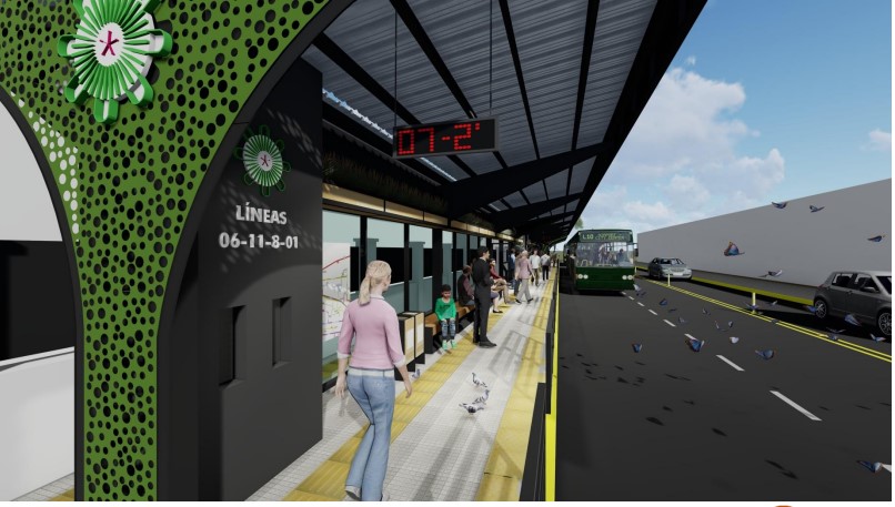 La dársena de espera tendrá un sobrenivel de 38 centímetros de diferencia con la vereda lo que permitirá que el arribo de los colectivos sea más fluida. Asimismo, se construirán ingresos para personas con movilidad reducida desde diversos sitios.