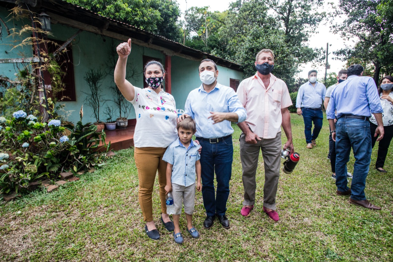 Acompañaron al mandatario provincial el ministro de Gobierno, Marcelo Pérez; el presidente del IFAI, Marcelo Rodríguez; la directora del IFAI, Rosana Argüello; el intendente de Tres Capones, Ramón Gerega; intendentes de localidades vecinas y beneficiarios.