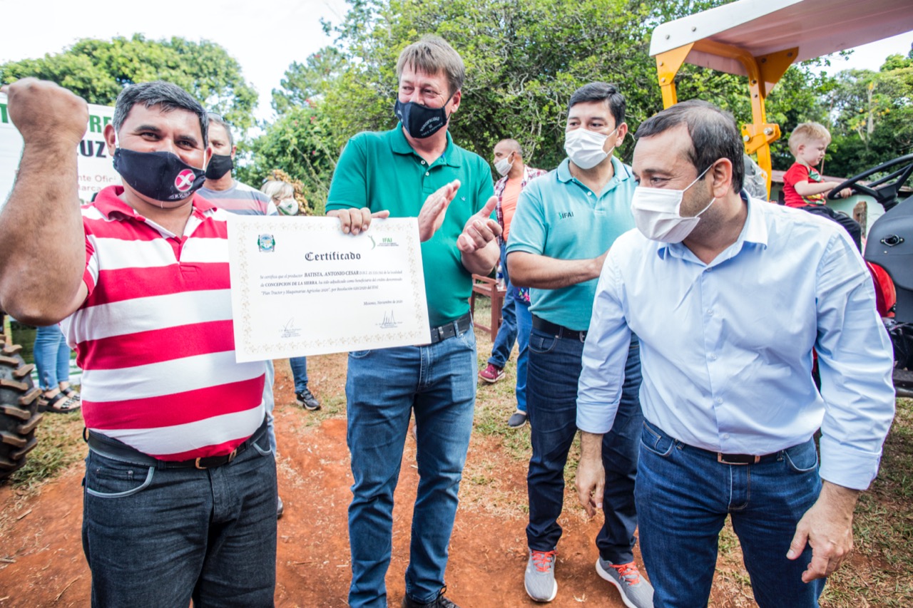 Afirmado su compromiso con los productores, Herrara Ahuad, expresó la convicción de seguir en este camino “con humildad, con sencillez con eficiencia, tratamos de que el colono misionero cada día humanice más su tarea”, esto significa apoyarlo con lo que necesita, “esto es tecnología y cuando la tecnología se aplica hace que el tiempo rinda mucho más, no es lo mismo hacerlo con tractor que sin tractor, no es lo mismo un riego manual que un riego automático, hay que optimizar los recursos naturales también”, aseguró y además explicó que se generó este Plan Tractor y Maquinarias Agrícolas desde el IFAI, con el objetivo de lograr que la mayor cantidad de productores misioneros puedan adquirirlos, buscando resolver los inconvenientes que les plantean las líneas de crédito de entidades financieras para las cuales no califican. Explicó que este es un programa accesible con un tiempo de gracia que les permite a los productores pagar las cuotas con el aumento de la producción y está destinado a productores, cooperativas y para consorcios de productores reunidos para la adquisición.