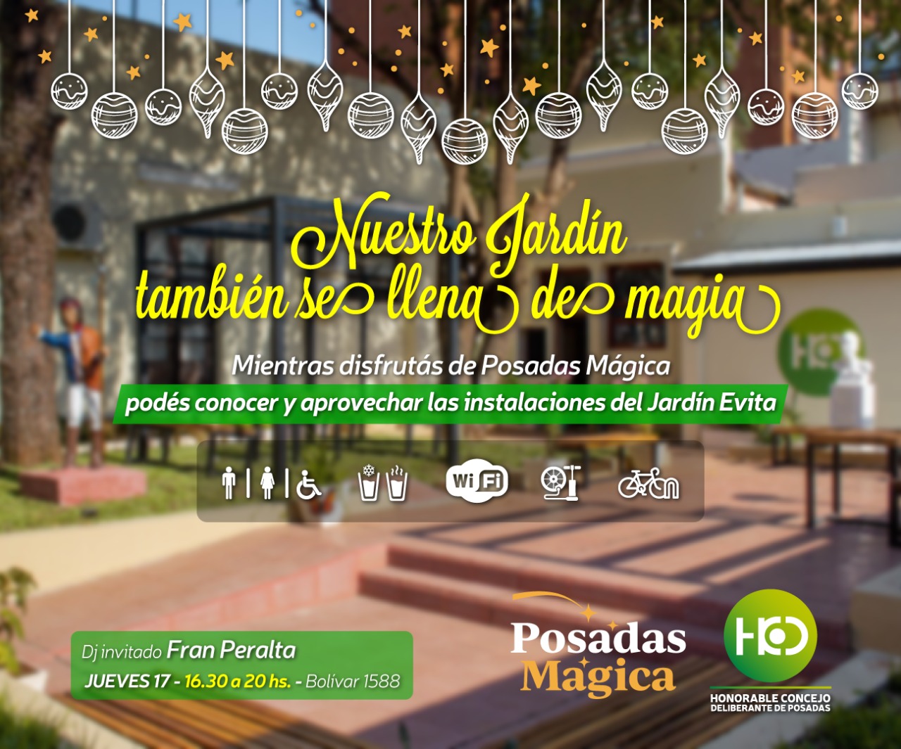 En el marco del mayor evento de descuentos y promociones de la ciudad, “Posadas Mágica”, iniciativa de la Cámara de Comercio e Industria de Posadas, el Concejo Deliberante abrirá las puertas del Jardín Evita, un espacio reinaugurado con diversos servicios para todos los vecinos de la ciudad.