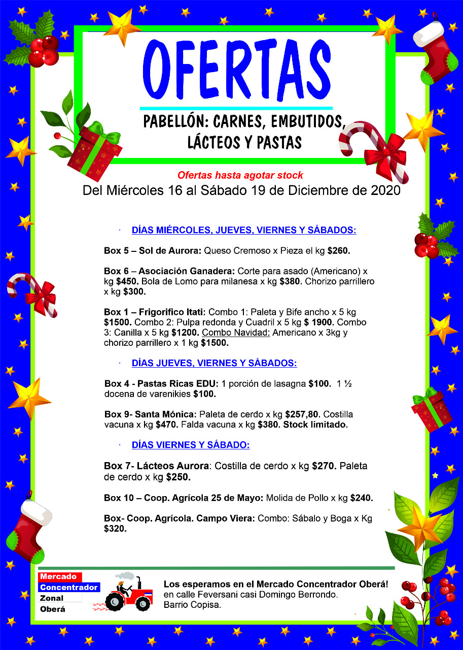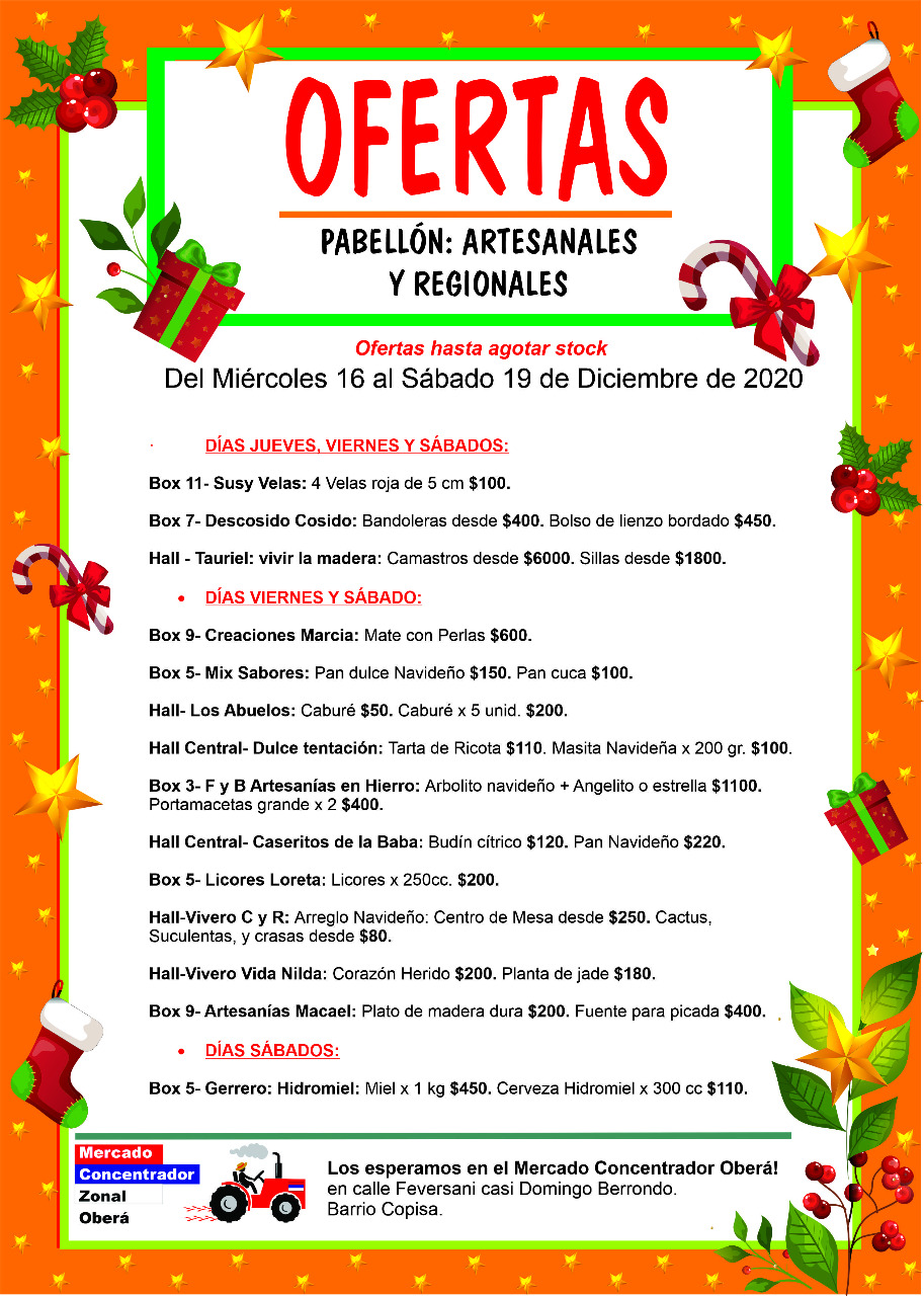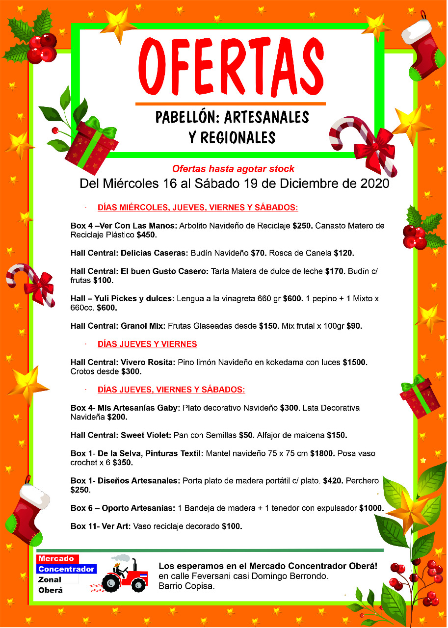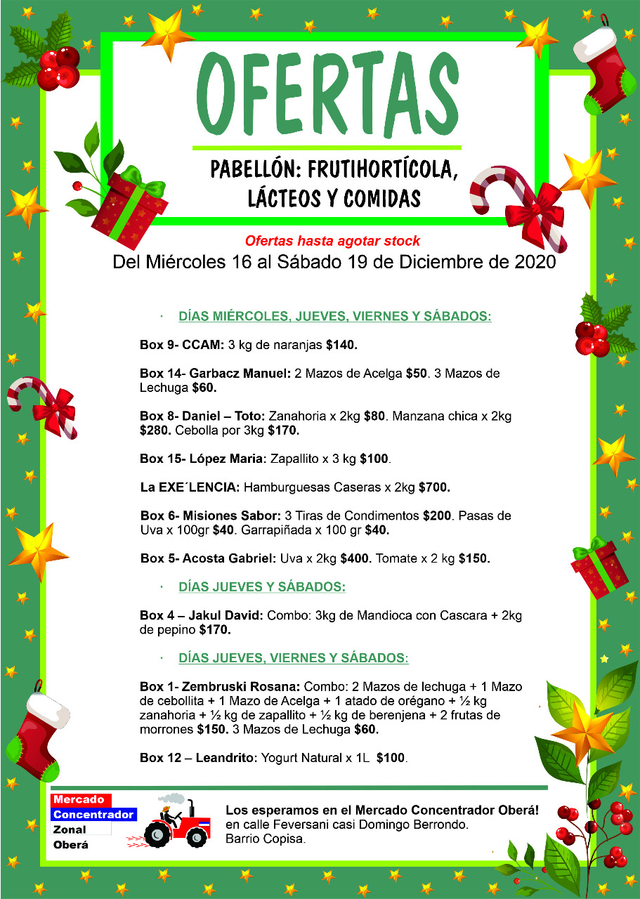 Las promociones son hasta agotar stock en la amplia gama de propuestas que tienen los productores de la zona Centro, comercializando en el Mercado Concentrador de Oberá