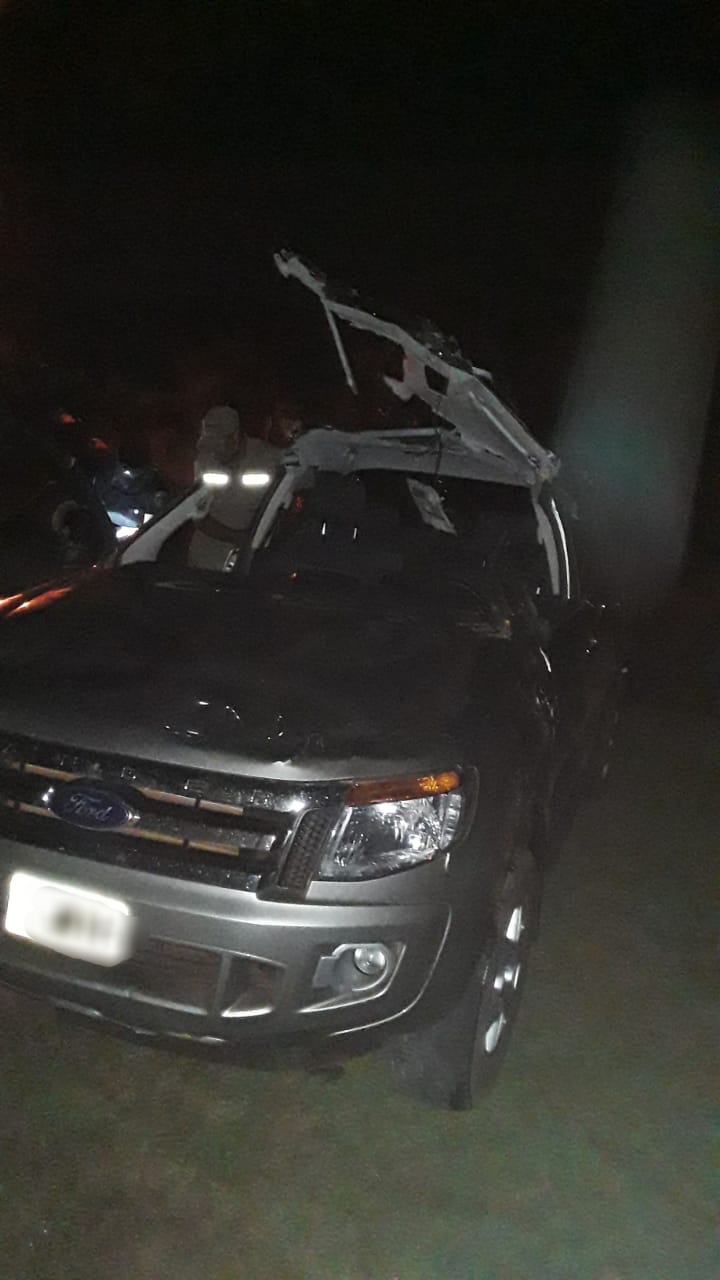 Un seguimiento se inició en ese instante, hasta que en un camino rural de Capioví, el conductor de la camioneta despistó y volcó, quedando el mismo dentro del habitáculo. Su acompañante huyó hacia una zona de monte.
