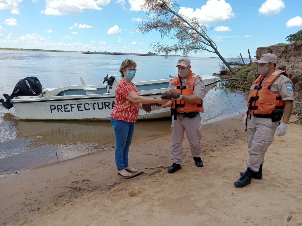Los huesos fueron entregados por personal de la Prefectura Naval Argentina, en custodia, al Museo de Villa Ocampo (Santa Fe).
