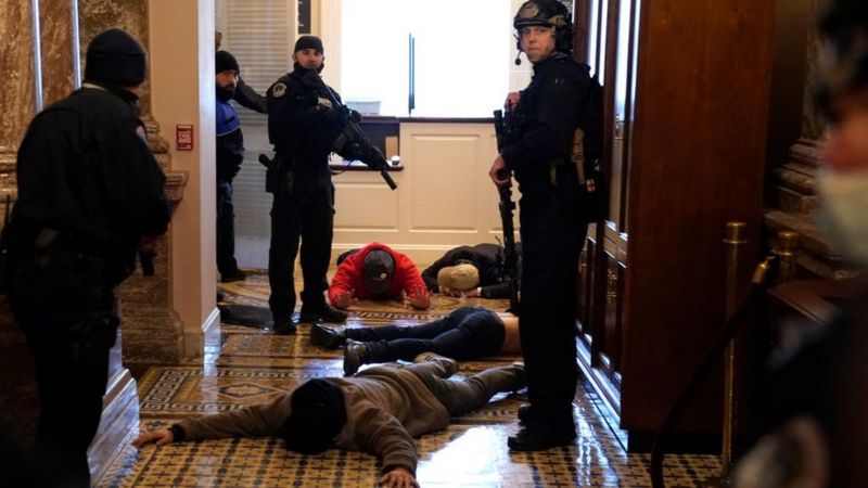 La ratificación llegó luego de una jornada con pocos precedentes en la historia política de Estados Unidos, con el Capitolio asediado por los partidarios de Trump y los legisladores buscando refugio bajo escritorios y protegidos con máscaras antigás mientras la policía trataba de erigir barricadas en torno al edifico del Congreso.